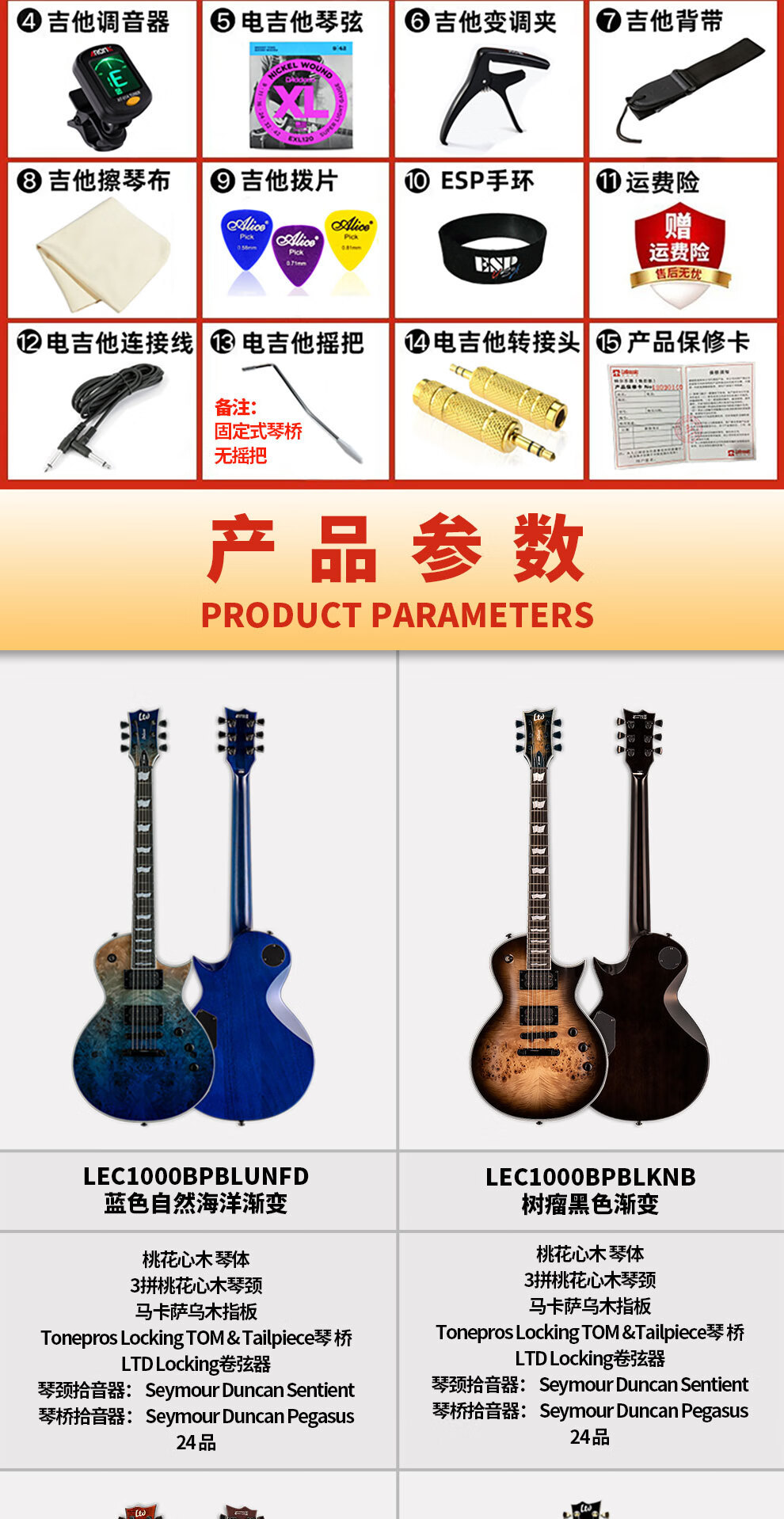 LTD 인도네시아 ESP LEC1000 시리즈 일렉트릭 기타 싱글 및 더블 쉐이크 일렉트릭 기타 고정 브리지 세트에서 수입스토어 가기