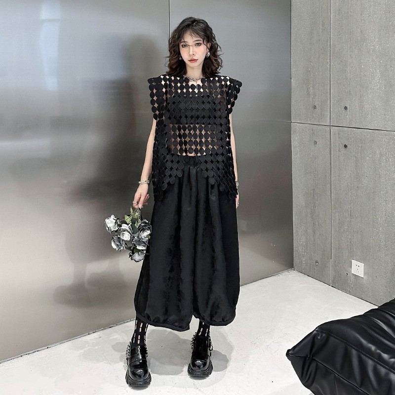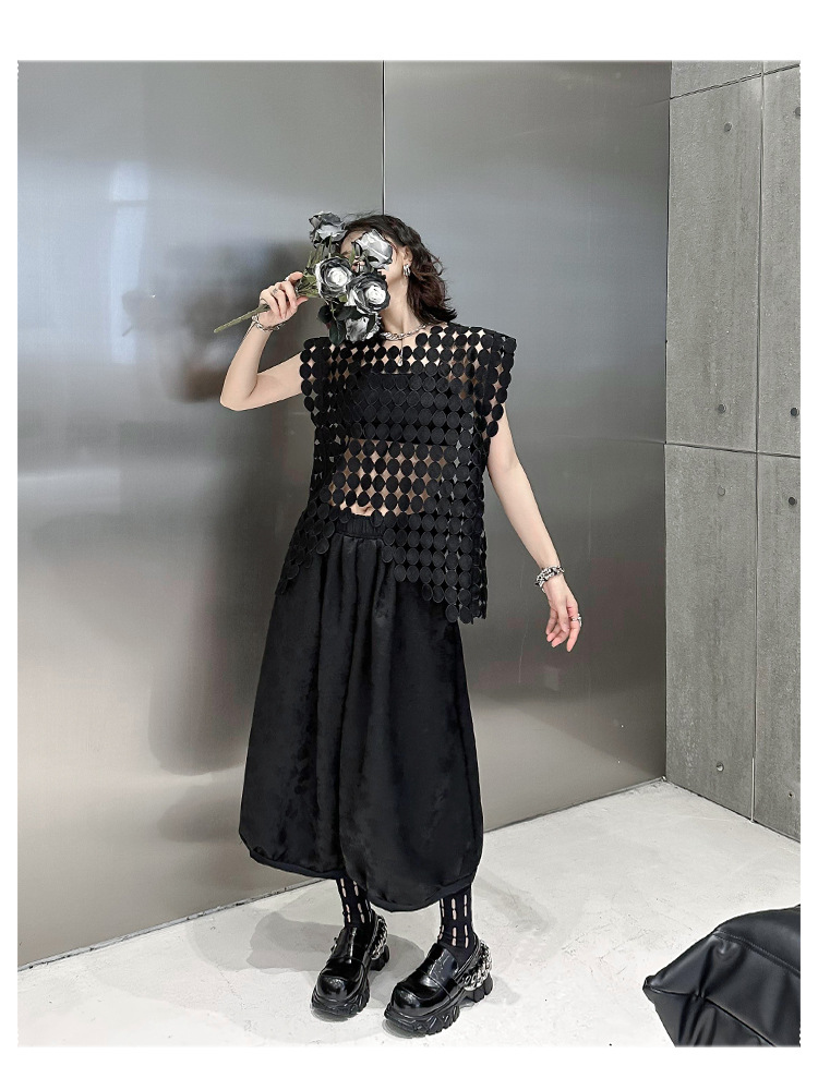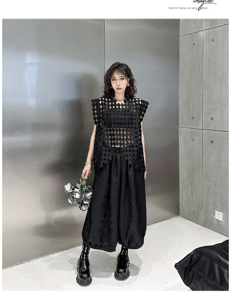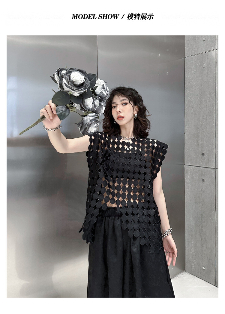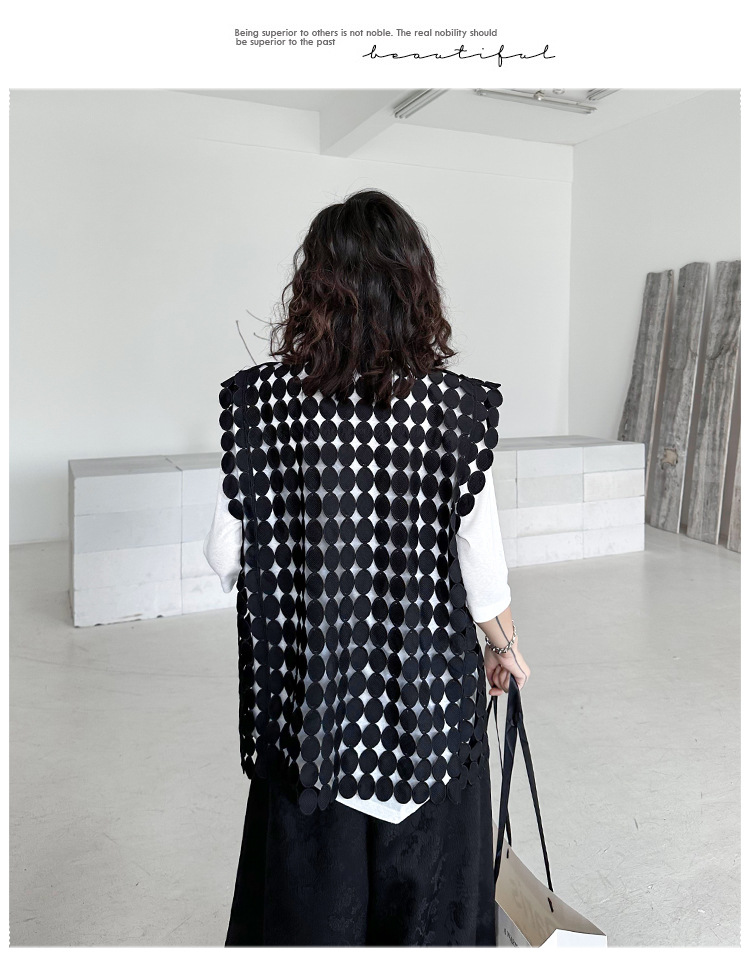 유럽과 미국의 스트리트 스타일 할로우 조끼 조끼 여성 여름 얇은 느슨한 쌓기-블라우스 유행 세련된 조끼 재킷