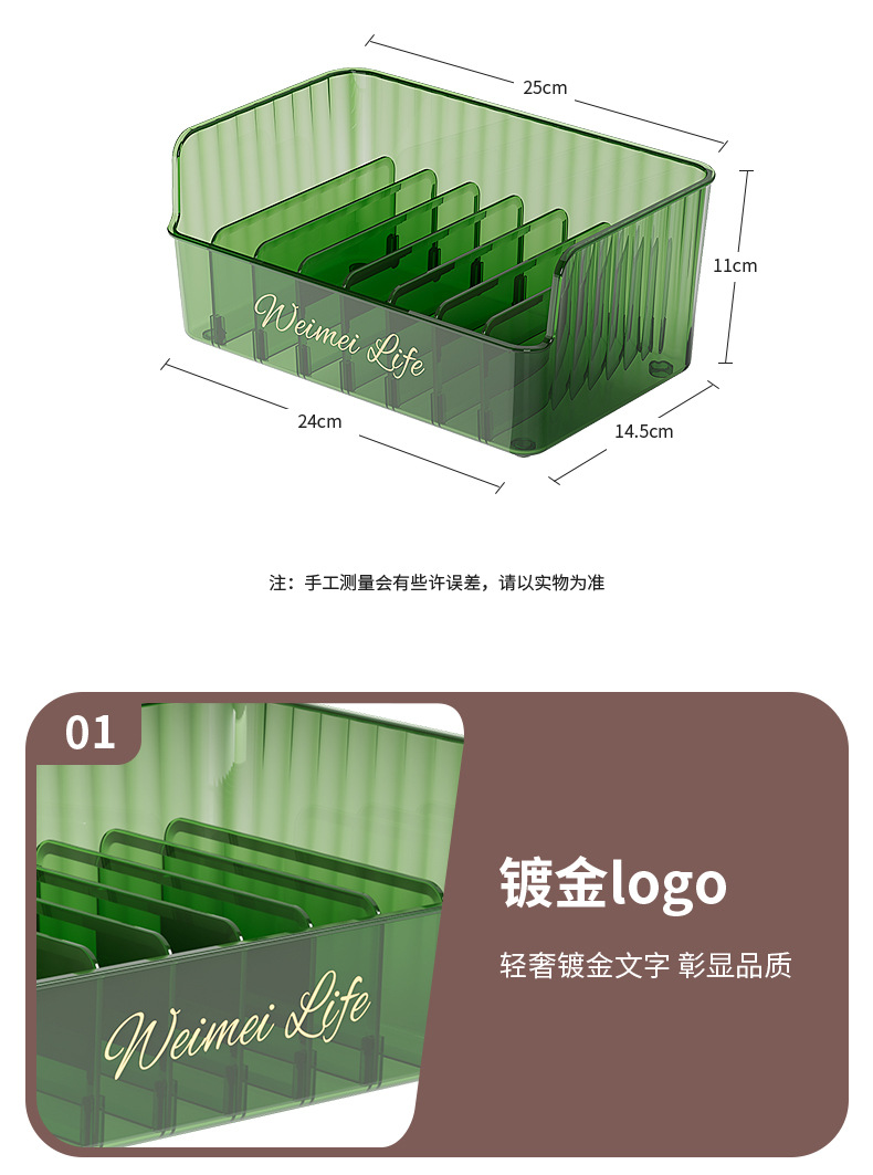 • 좁고 긴 스타일 - 반투명 녹색(칸막이 포함)