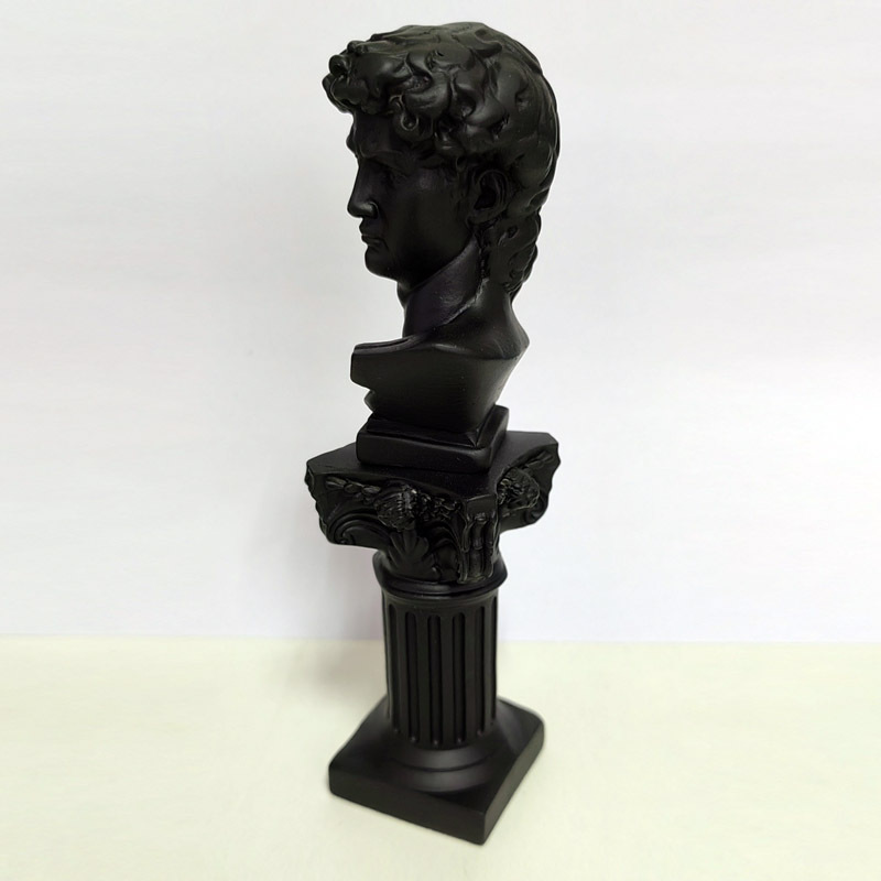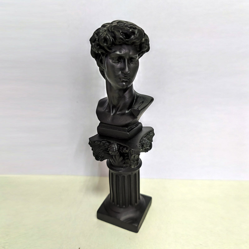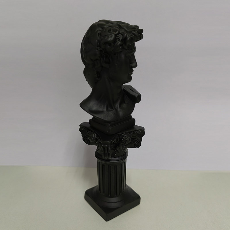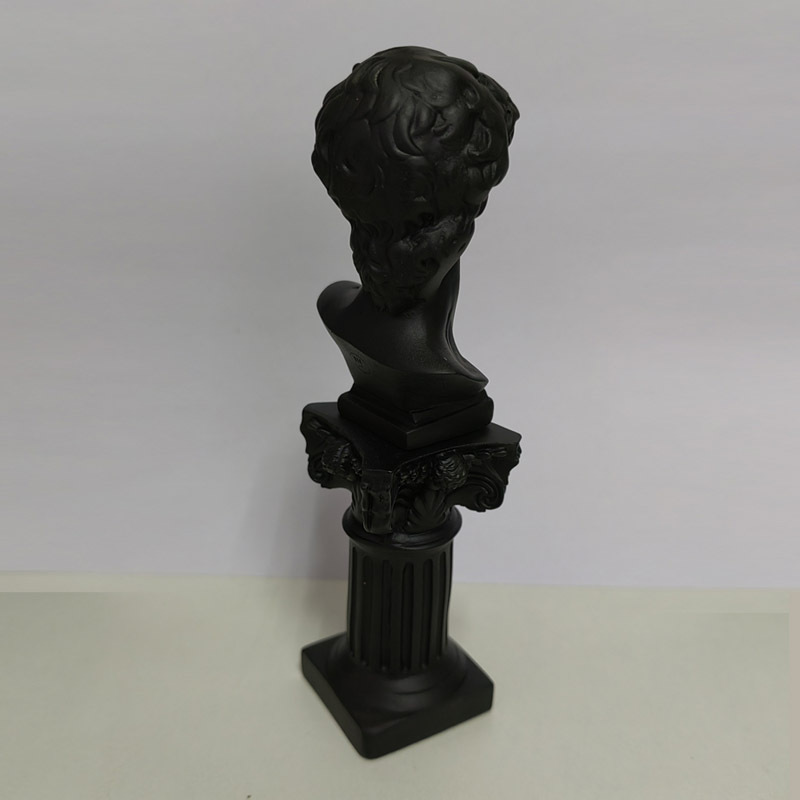 本产品由树脂制作,人物和罗马柱都是纯黑色的效果,人物也有仿古铜的效果,可参考图片描述。