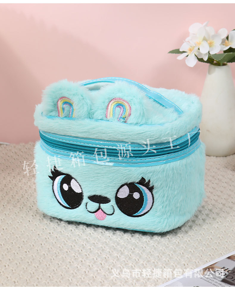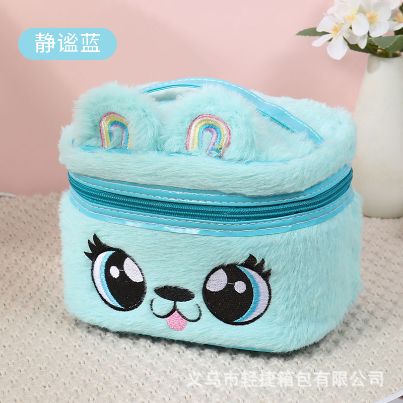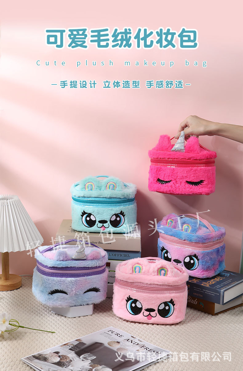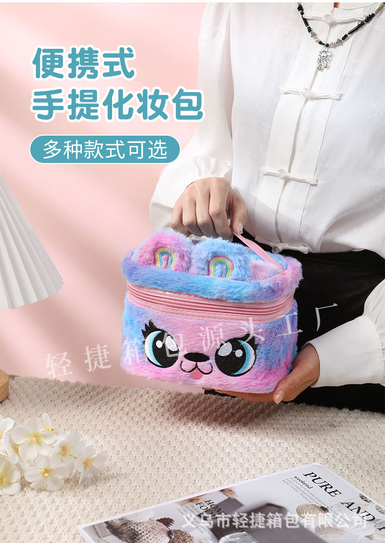 플러시 헤어 액세서리 보관함, 다기능 자수 화장품 가방, 대용량 세면도구 가방, 메이크업 브러쉬, 유럽 및 미국 레트로 스타일스토어 가기