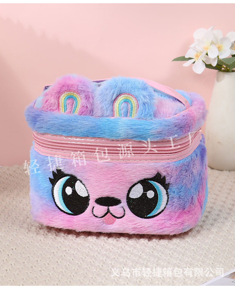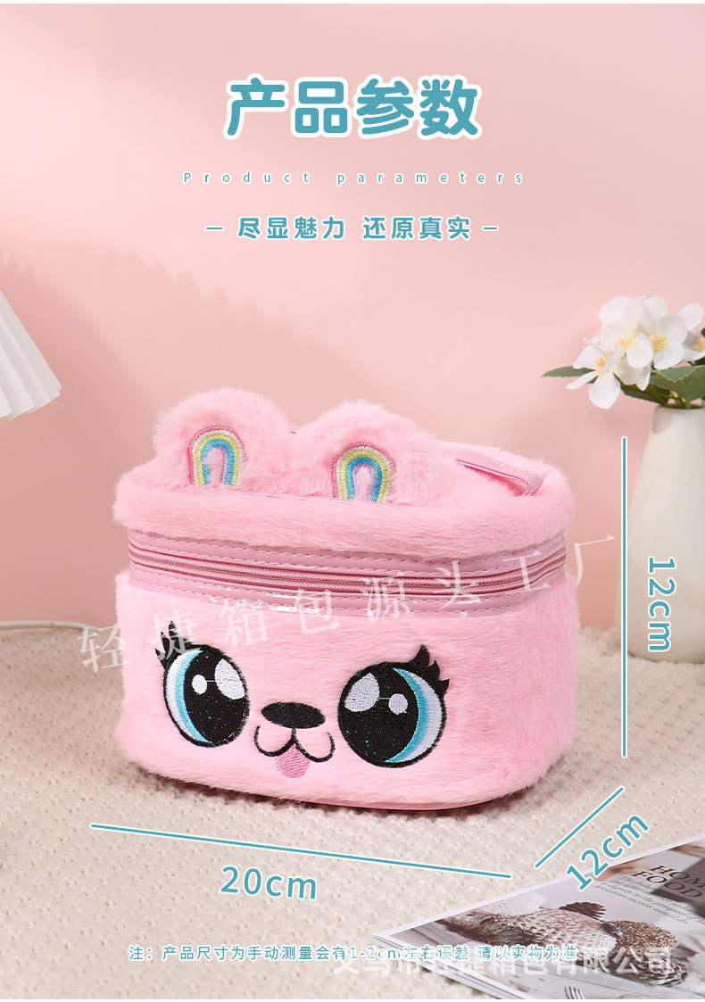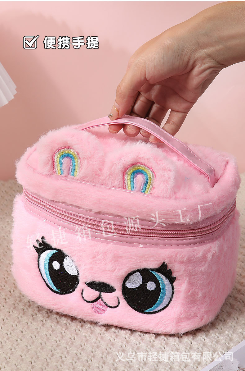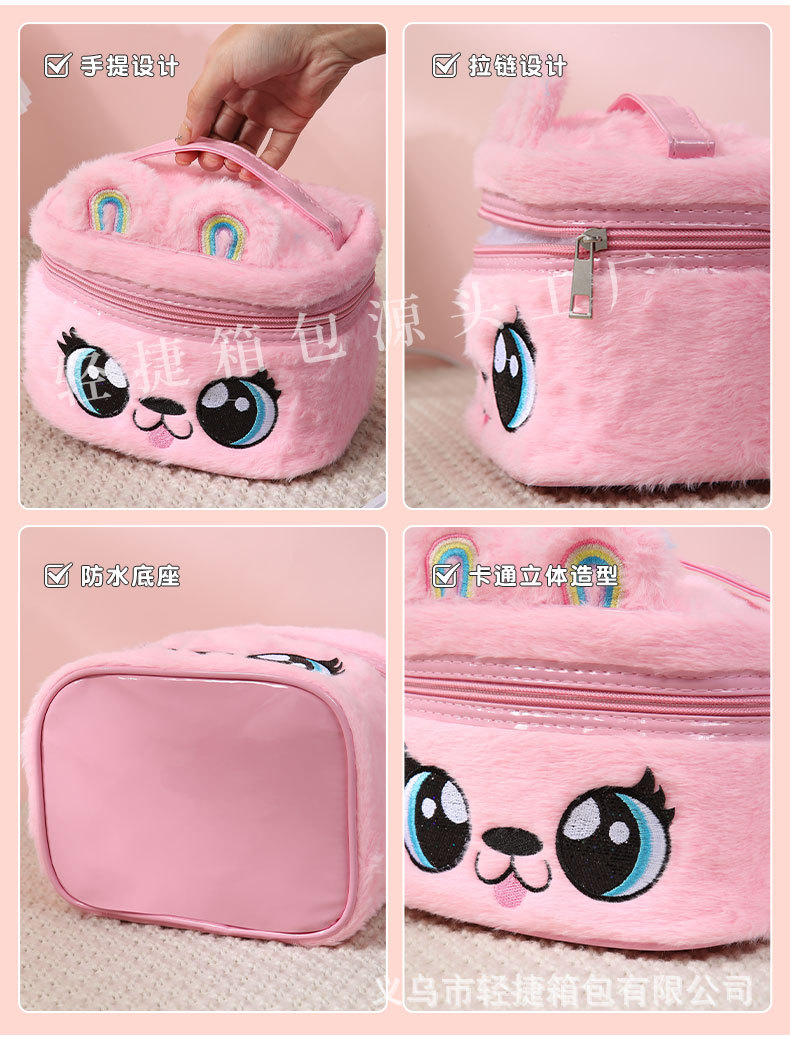 플러시 헤어 액세서리 보관함, 다기능 자수 화장품 가방, 대용량 세면도구 가방, 메이크업 브러쉬, 유럽 및 미국 레트로 스타일스토어 가기