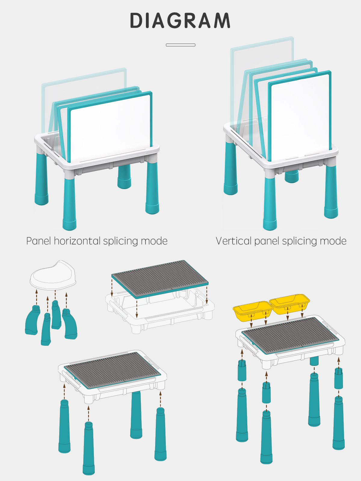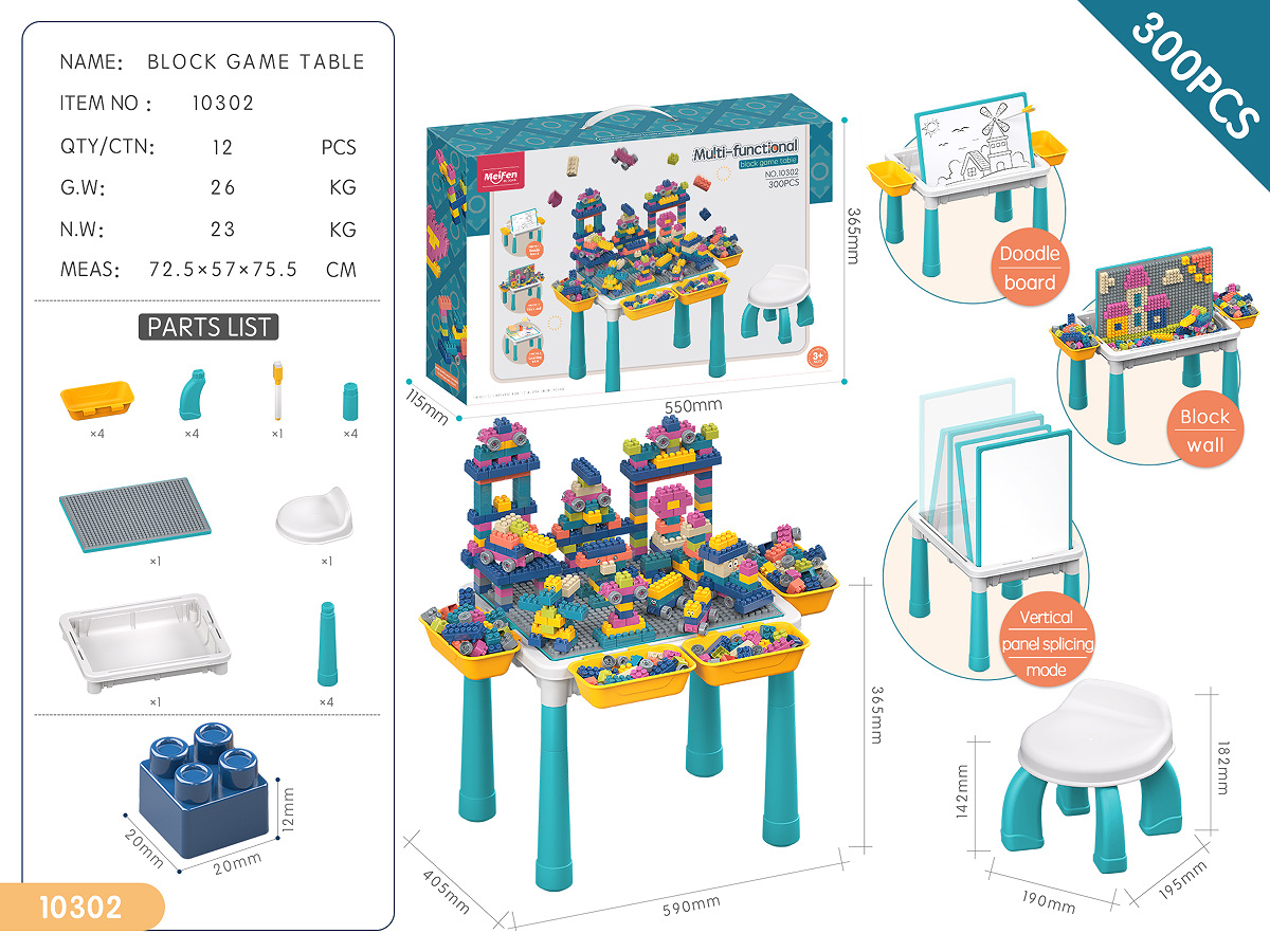 • 다기능 블록 놀이 테이블 + 402PCS (중형 휴대용 컬러 박스)