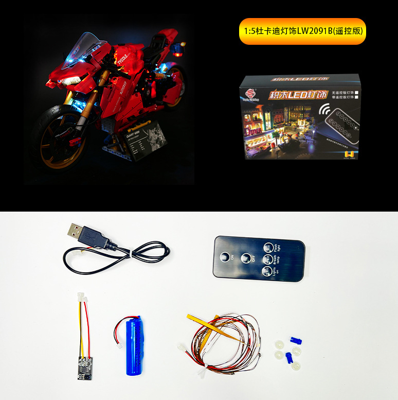 Lego taogale 1:5 du Kadi 오토바이 어셈블리와 호환되는 DIY 빌딩 블록 조명 LED 원격 제어 조명 지원스토어 가기