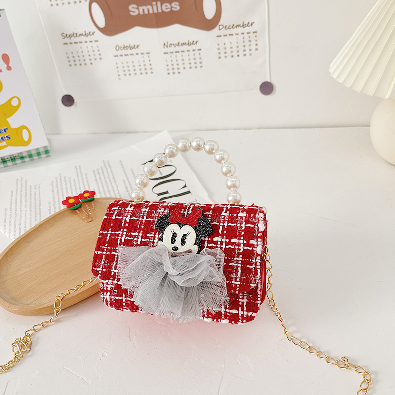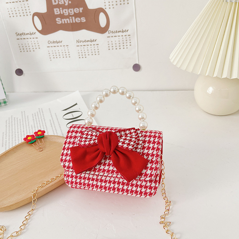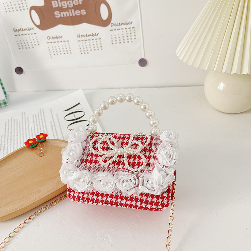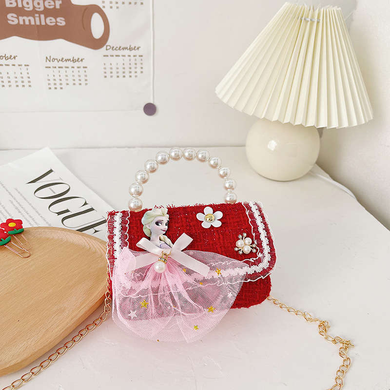진주 휴대용 경량 미니 가방 레드 어린이 가방 패션 소녀 공주 서양식 액세서리 메신저 가방