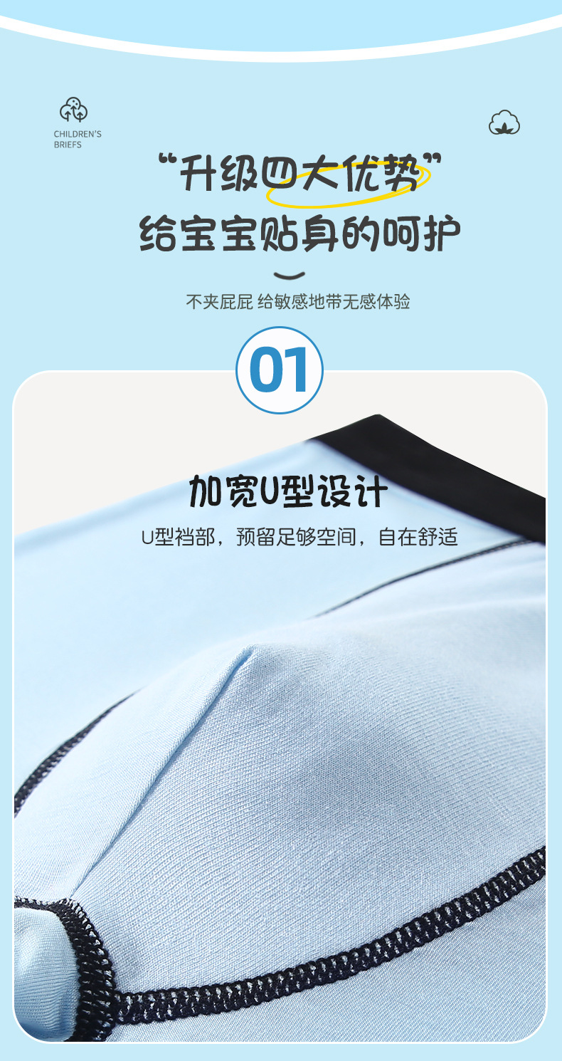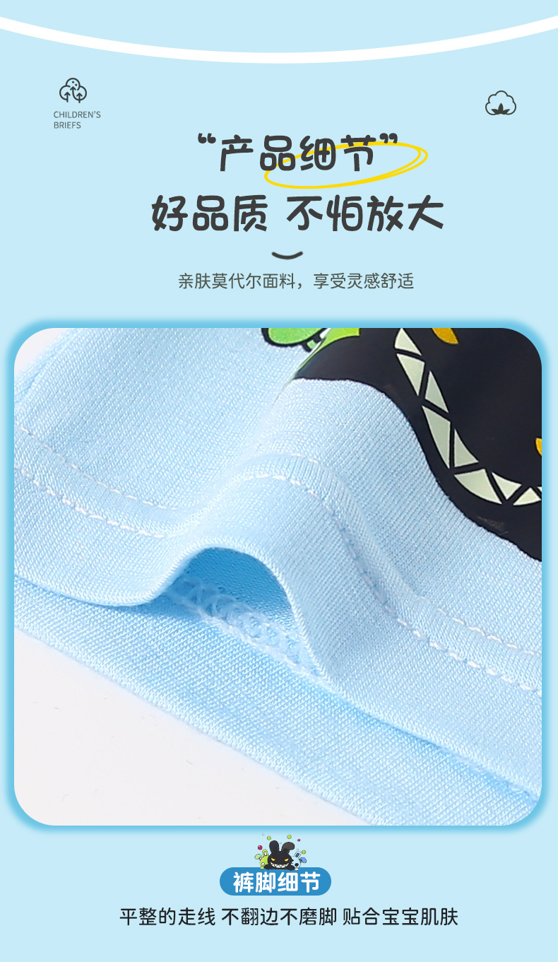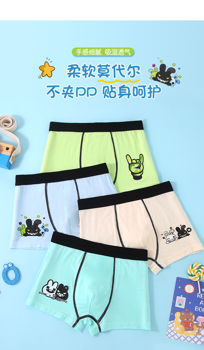 A급 아동용 속옷 도매 무봉제 아기 사각팬티 남아용 95% 모달 속옷 반바지 무봉제 편안함