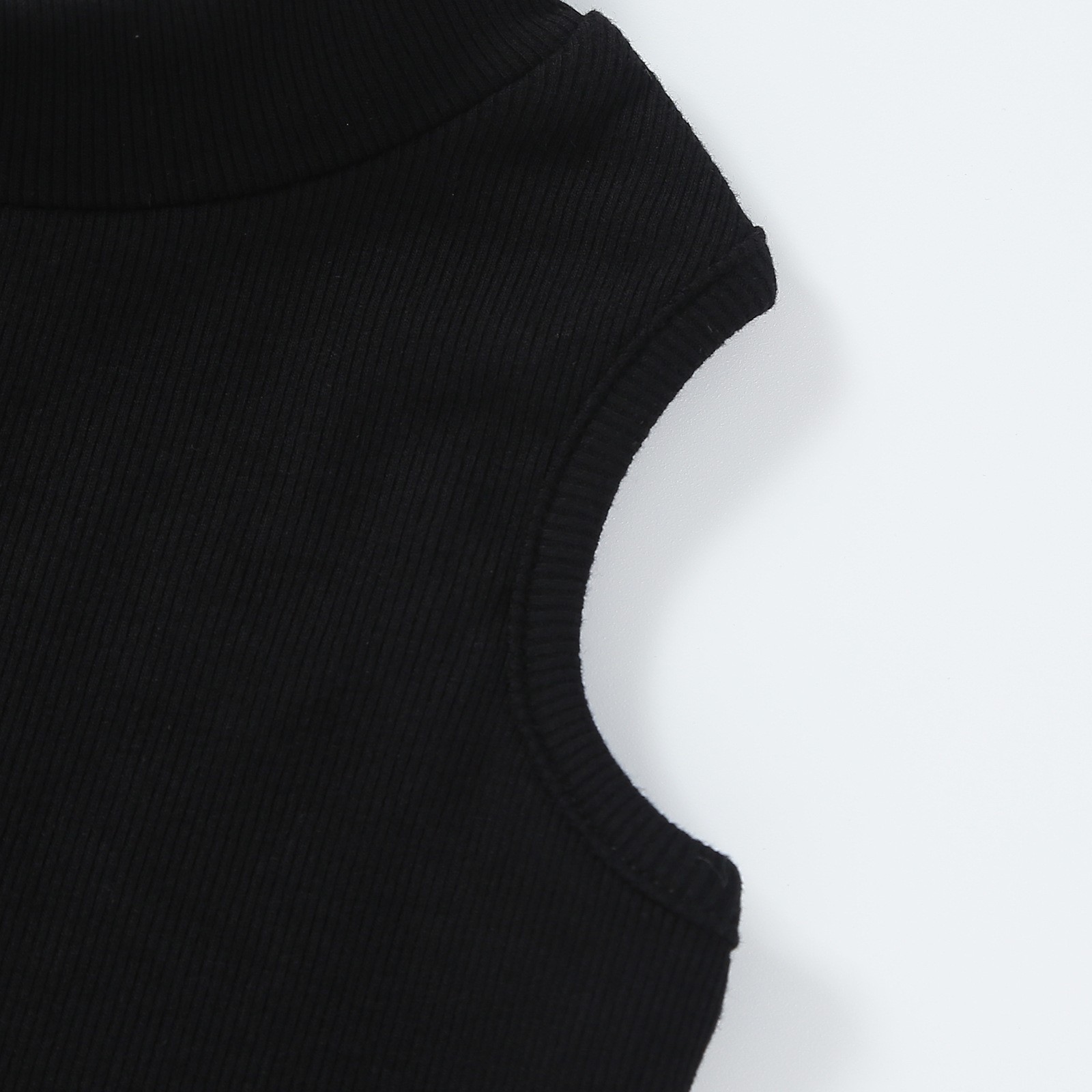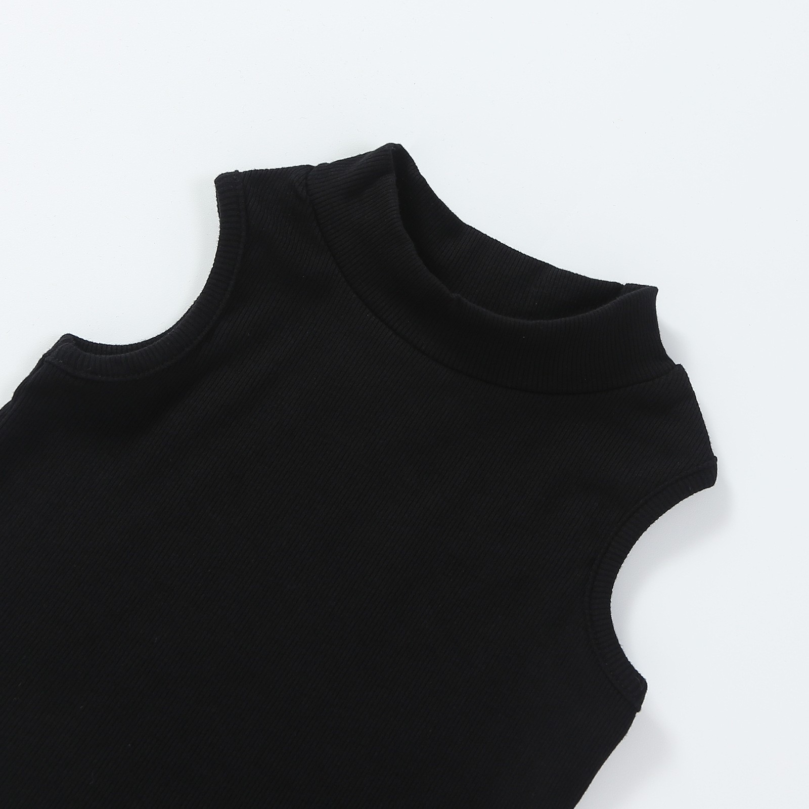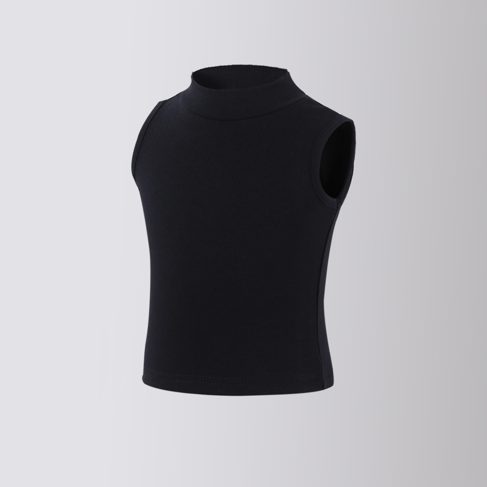 소녀 터틀넥 조끼 여름 새로운 미국 허리 슬리밍 짧은 민소매 단색 티셔츠 탑 인 패션