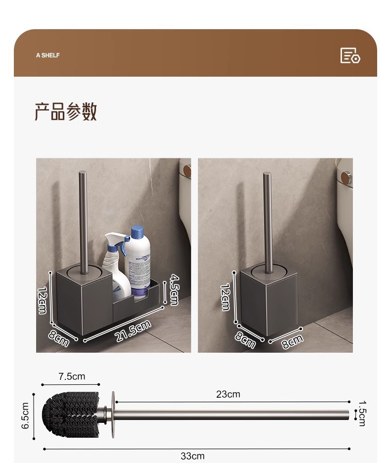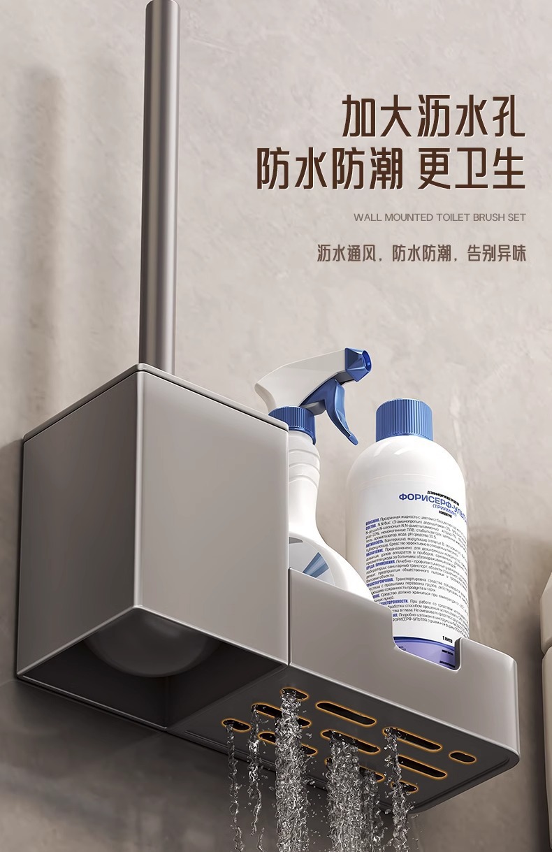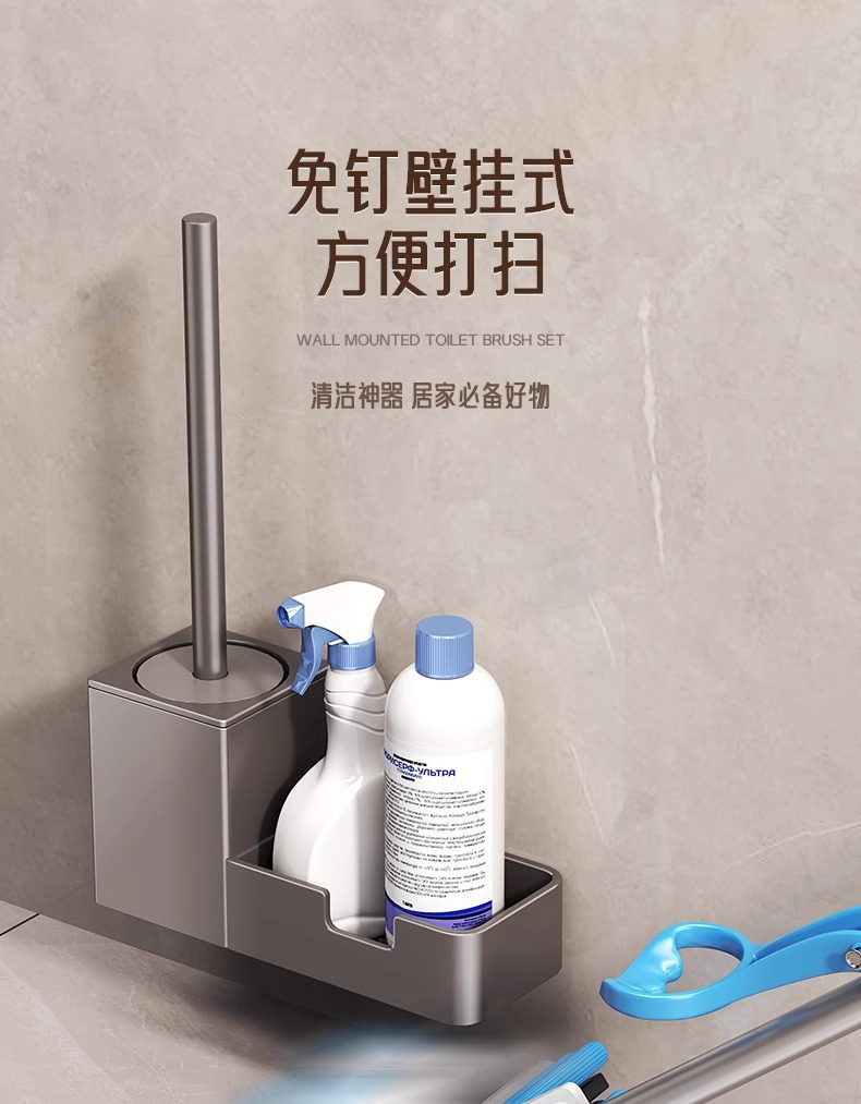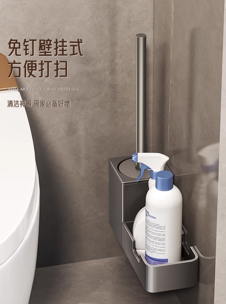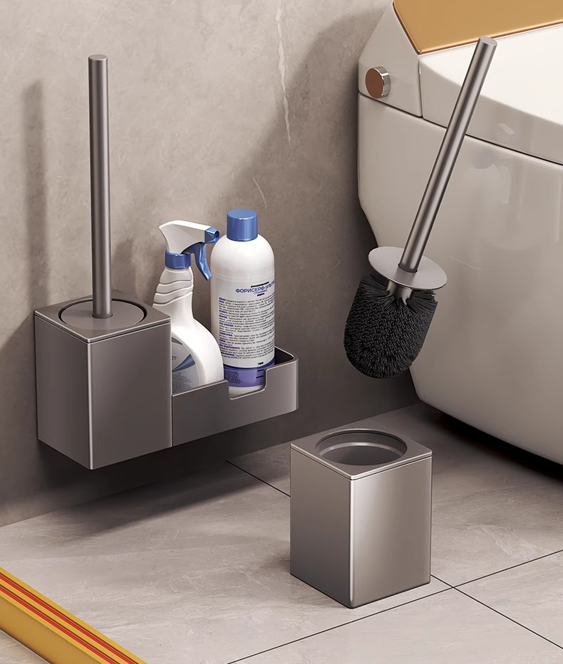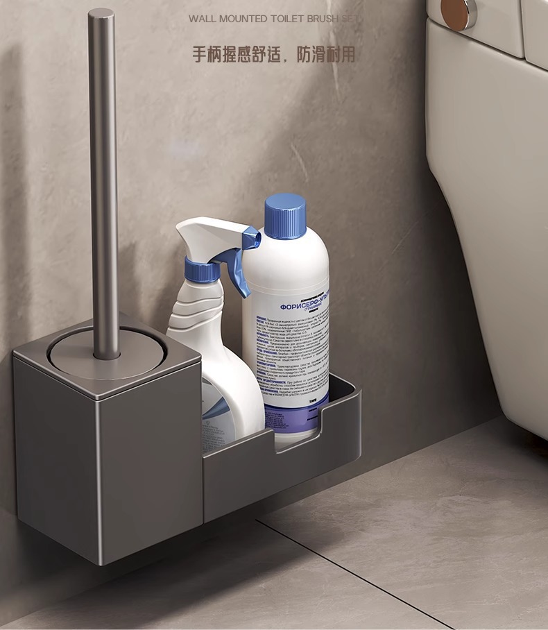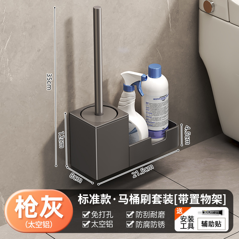• [네일프리 접착제 설치] 수납선반이 포함된 사각 변기 브러시 - 건그레이