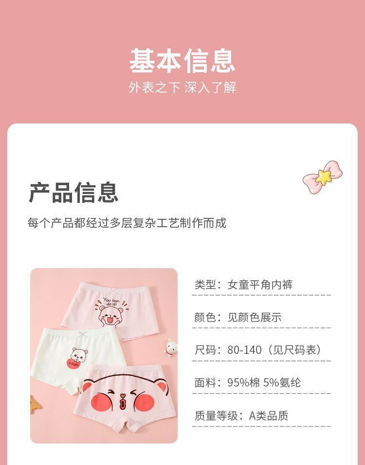 Yankechun 클래스 A 아동 속옷 도매 순면 가랑이 이음매없는 아기 복서 팬티 소녀 95% 반바지 어린이 및 중년 어린이