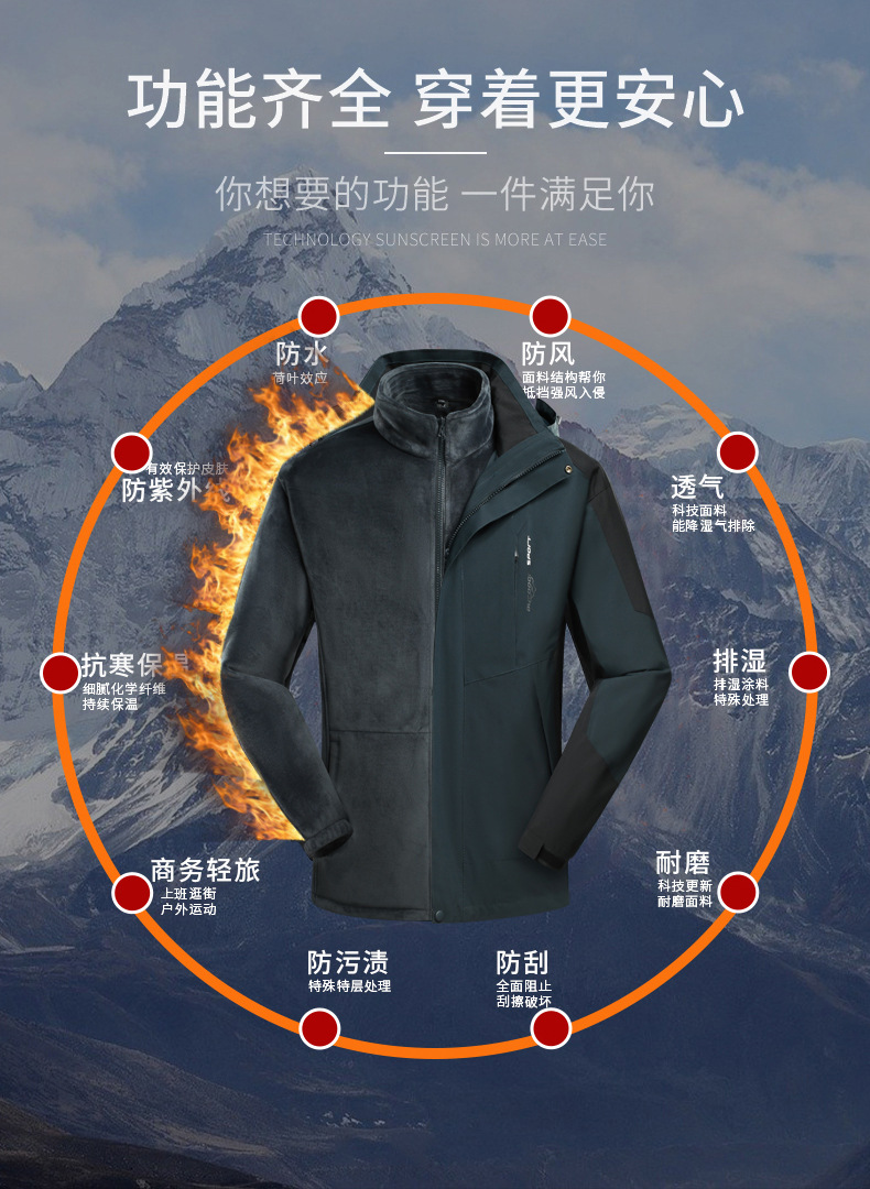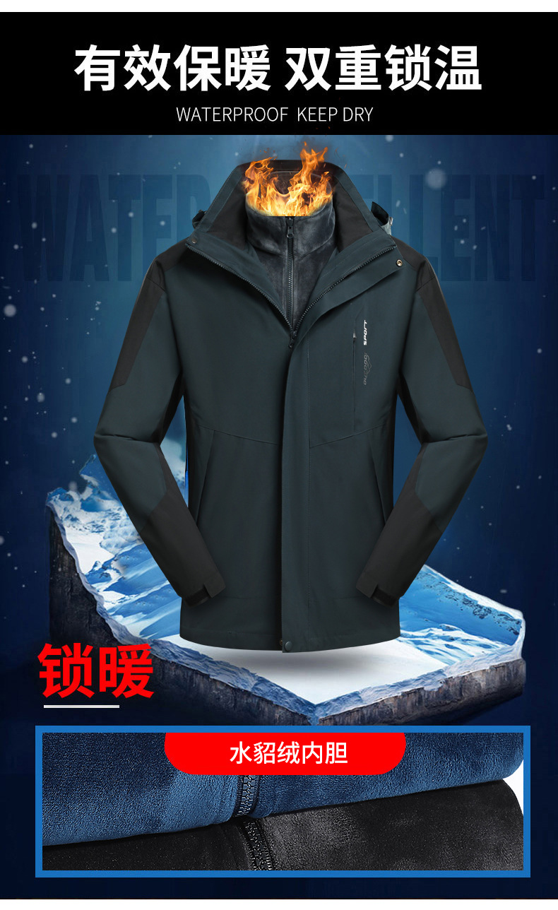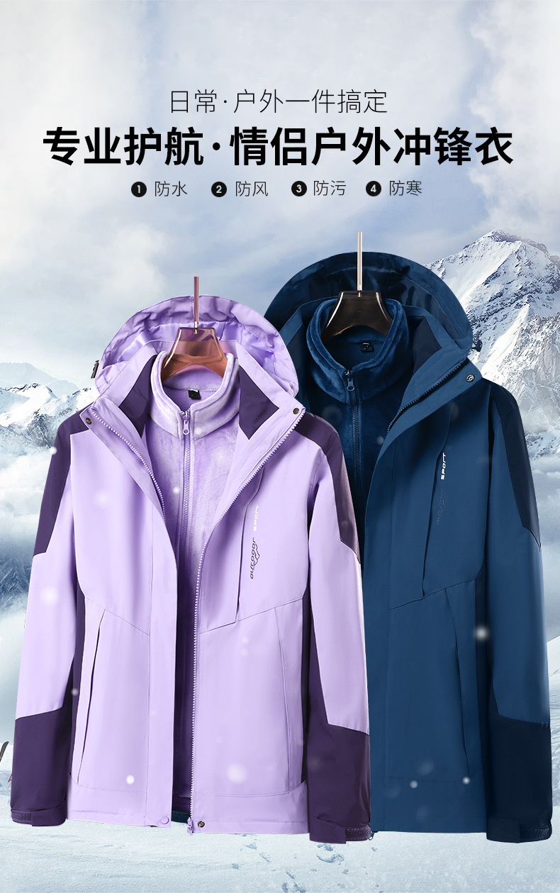 커플용 3-in-1 겨울 방한 플리스 안감 두꺼운 실버폭스 안감 방풍 방수 재킷 공동구매