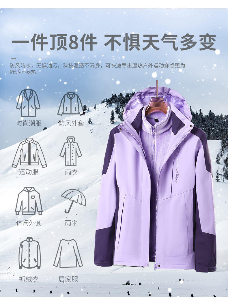 커플용 3-in-1 겨울 방한 플리스 안감 두꺼운 실버폭스 안감 방풍 방수 재킷 공동구매스토어 가기