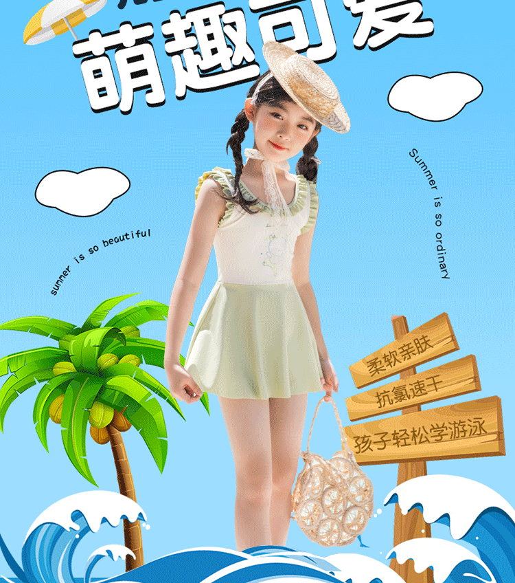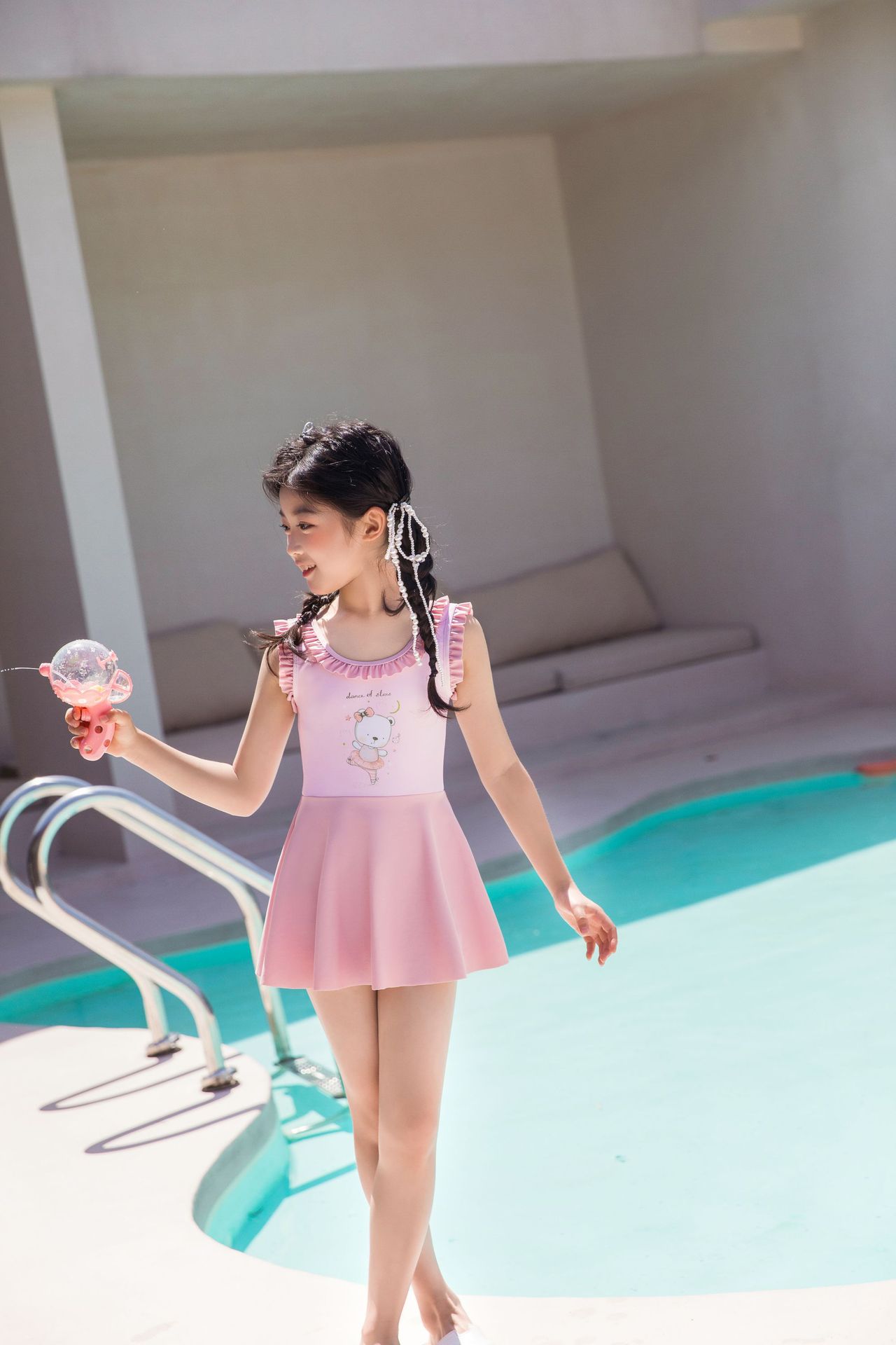 어린이 수영복 소녀의 새로운 중형 및 대형 어린이 소녀 귀여운 패션 교수형 점프 수트 수영 스커트 서양식 온천 휴가 수영복