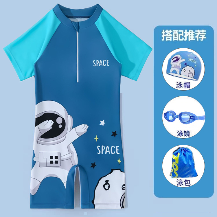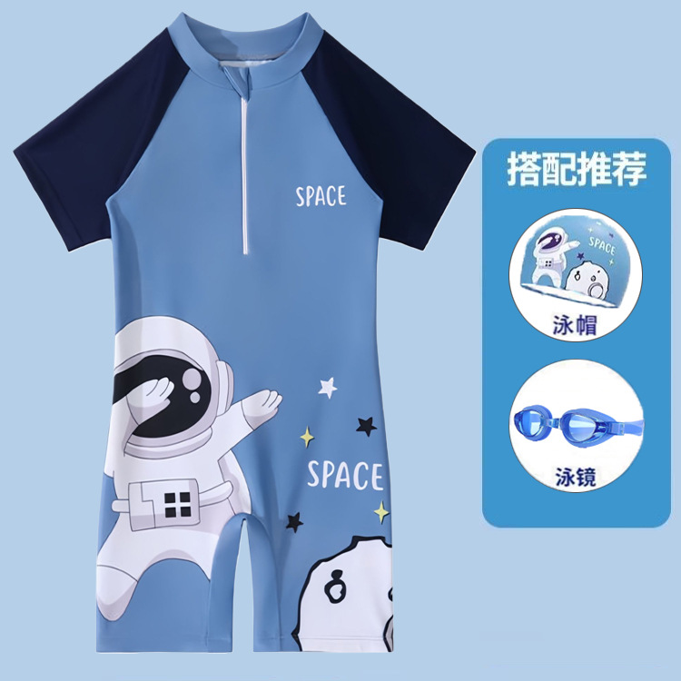 새로운 우주인 어린이 수영복 소년 여름 원피스 소년 작은 중형 및 큰 어린이 태양 보호 전문 수영 장비 세트