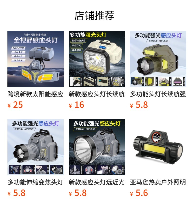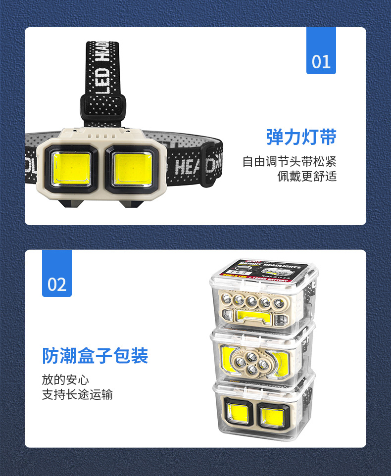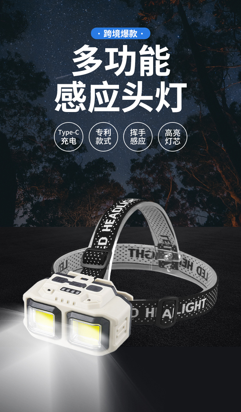 아마존 충전식 led 헤드 라이트 강한 빛 긴 내구성 필드 빛 방수 머리 장착 유도 낚시 헤드 라이트 도매