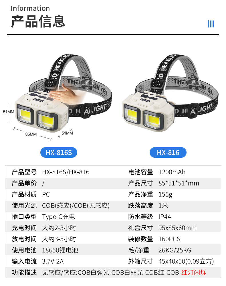 • HX-816(USB 케이블 + 전조등 + 전조등)
