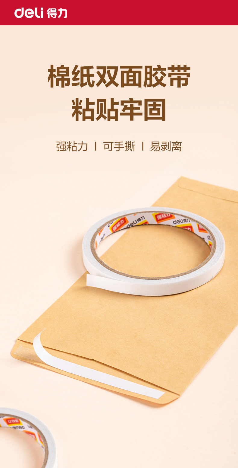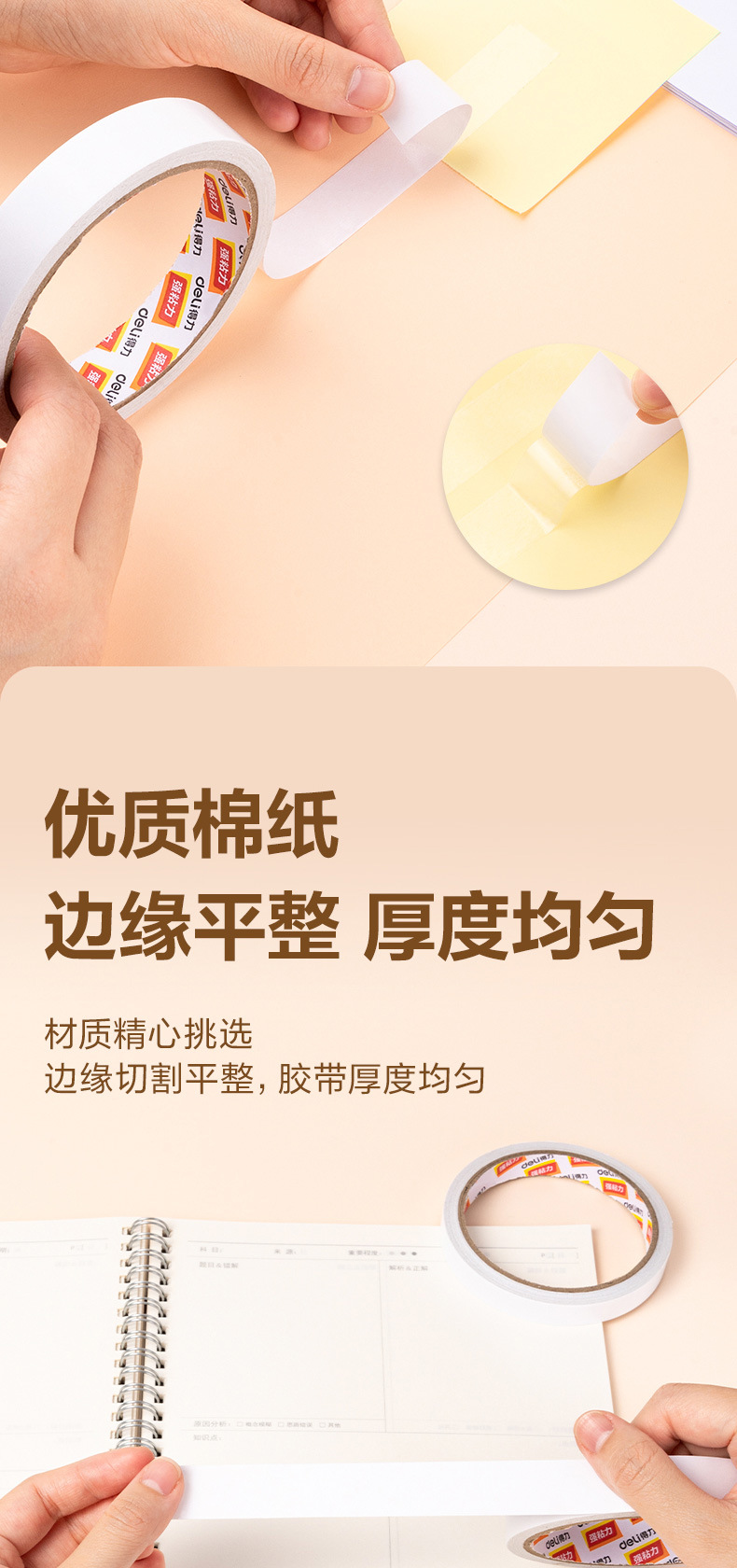 델리 면화 종이 양면 테이프 고점도 어린이 수제 DIY 면 종이 테이프 학생용 양면 접착 테이프