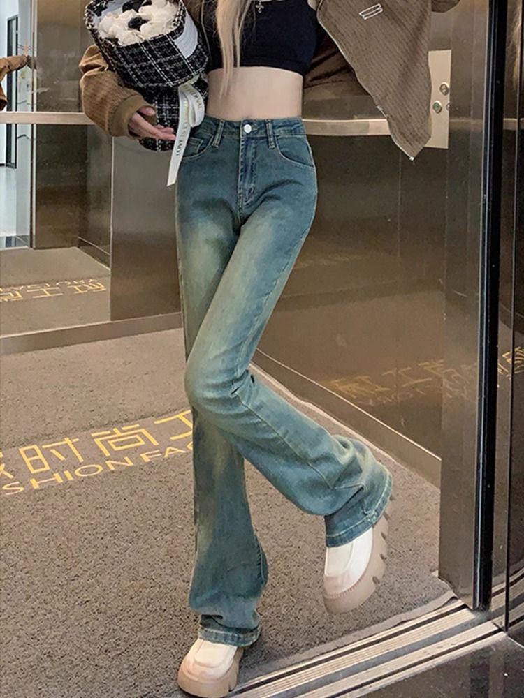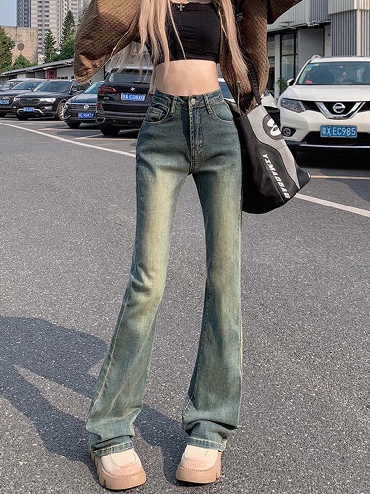틈새 미국 복고풍 기모 두꺼운 청바지 여성의 겨울 새로운 슬림 핏 슬리밍 디자인 센스 걸레 바지스토어 가기