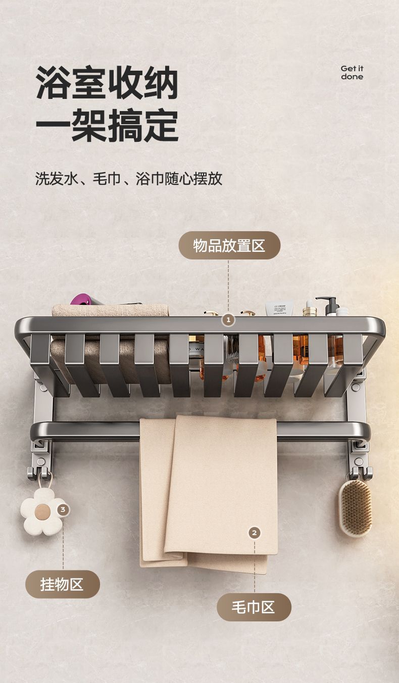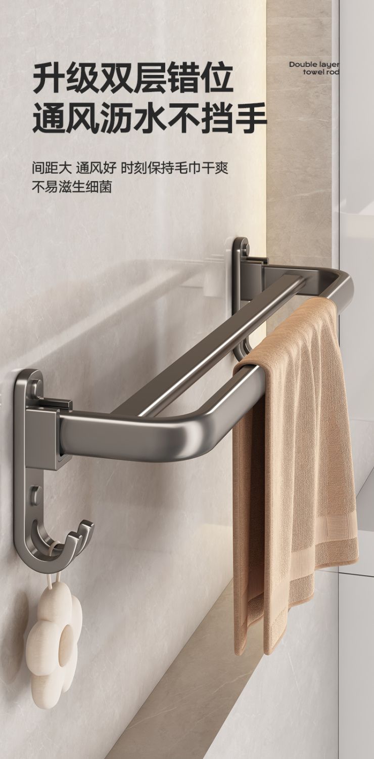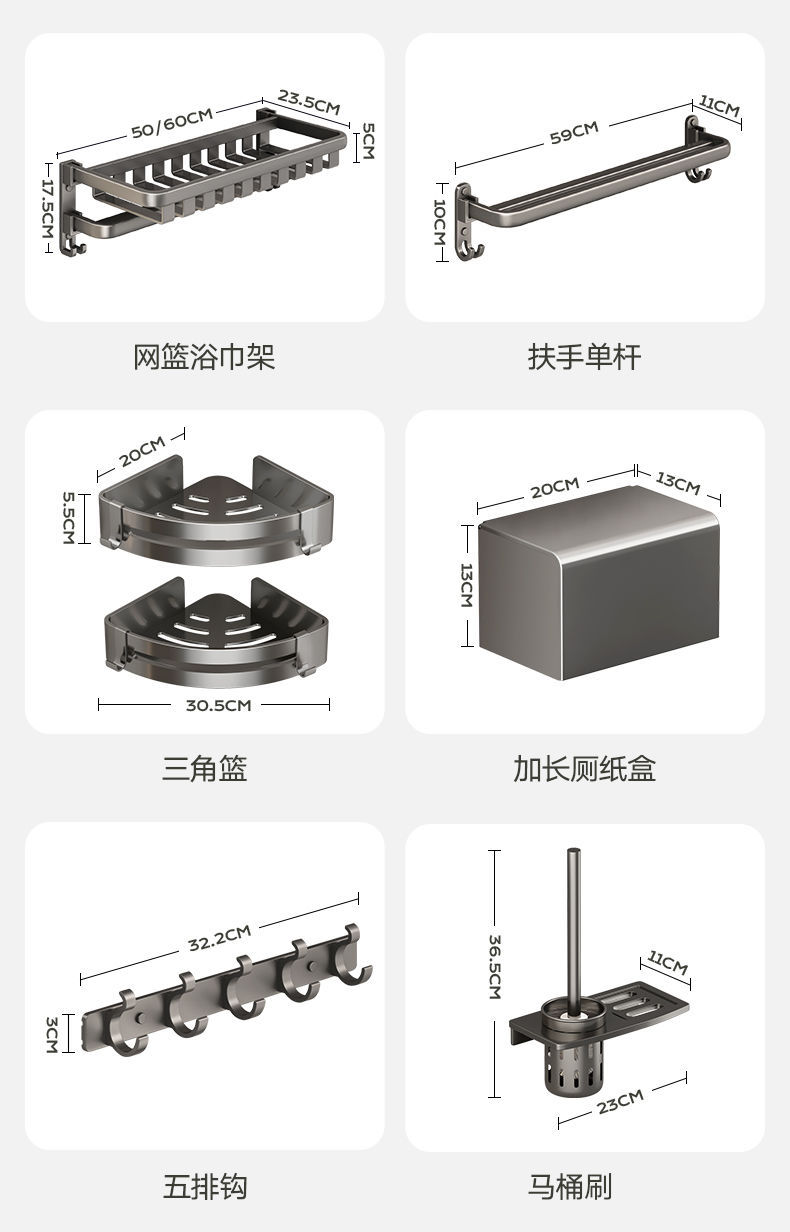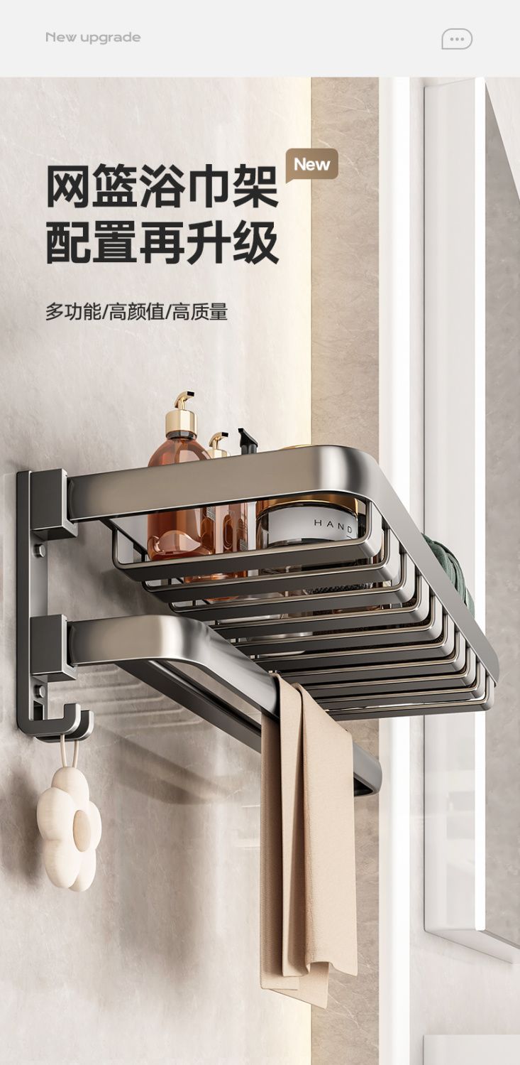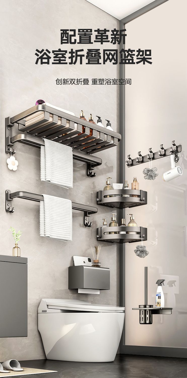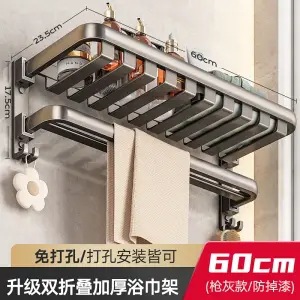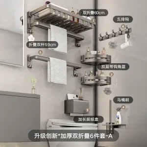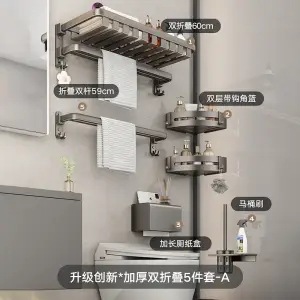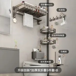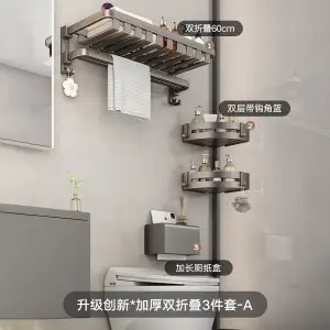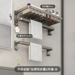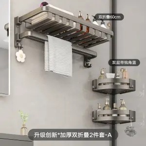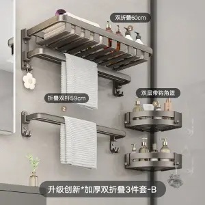 총 회색 수건 랙 세트 조합 벽걸이 형 욕실 보관 랙 접이식 펀치 프리 랙스토어 가기