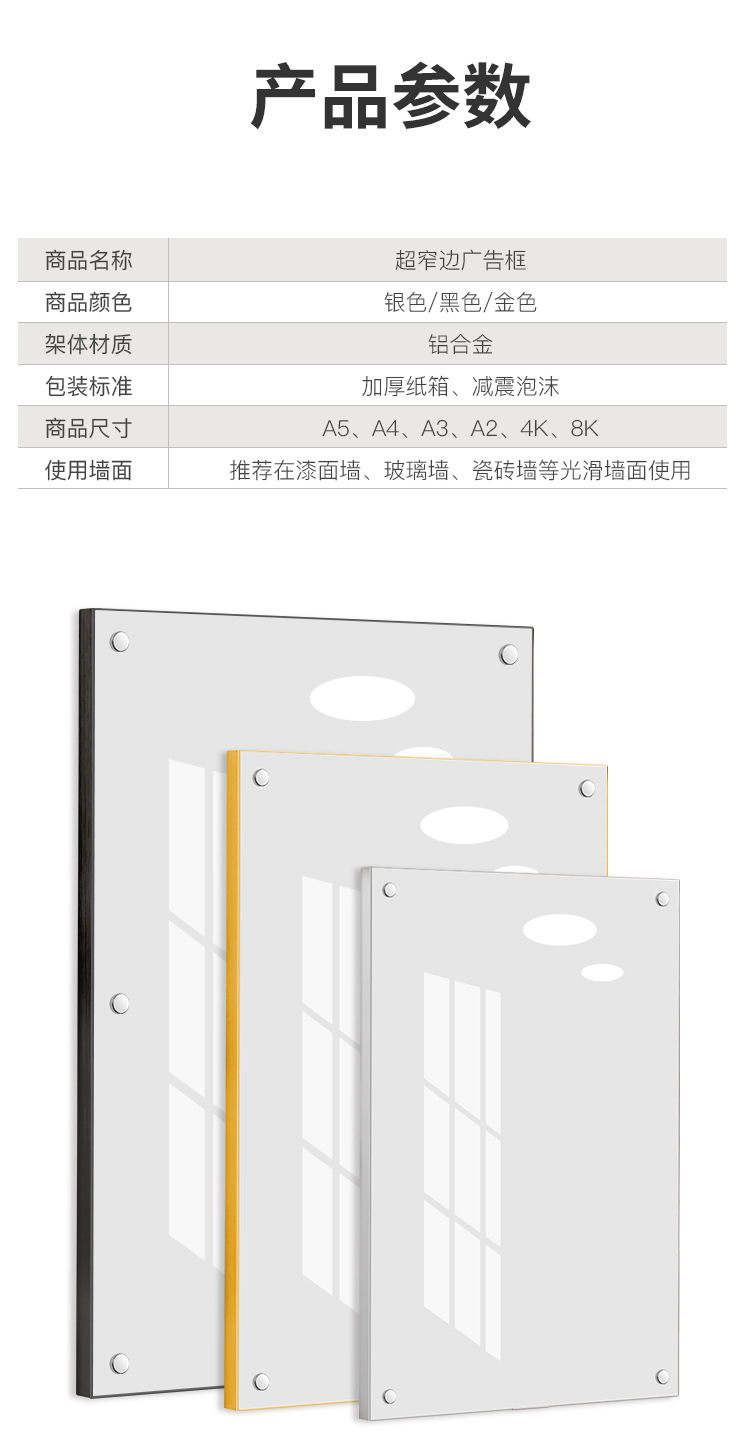 아크릴 포토 프레임 벽걸이 형 a4 알루미늄 합금 프레임리스 4K 디스플레이 프레임 자기 흡입 광고 프레임 8K 사진 프레임 a3 사진 프레임스토어 가기