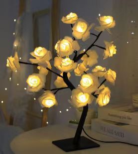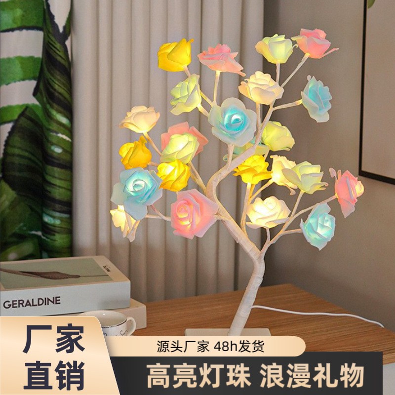 로맨틱 LED 로즈 트리 램프 USB 스위치 시뮬레이션 가짜 꽃 밤 빛 친구 생일 선물 작은 테이블 램프
