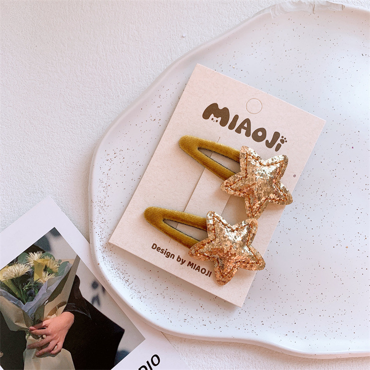 새로운 어린이 빛나는 오각형 별 머리핀 귀여운 소녀 앞머리 부러진 머리 BB 클립 아기 쌍 머리핀 머리 장식