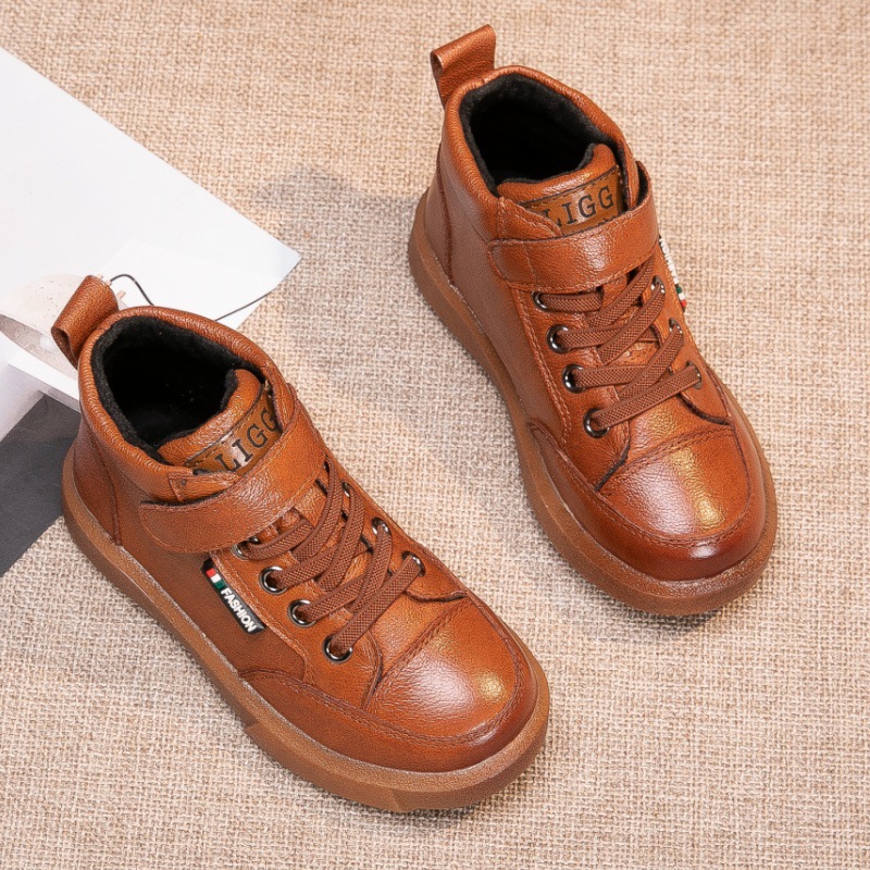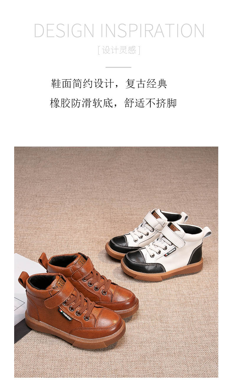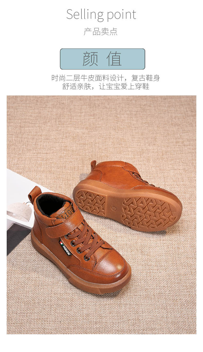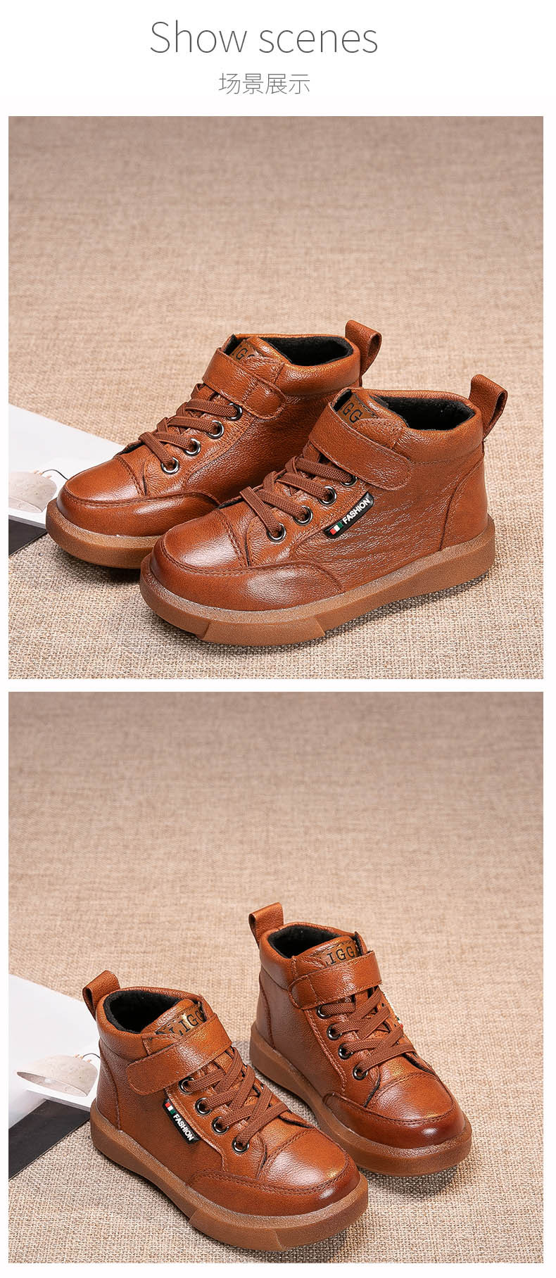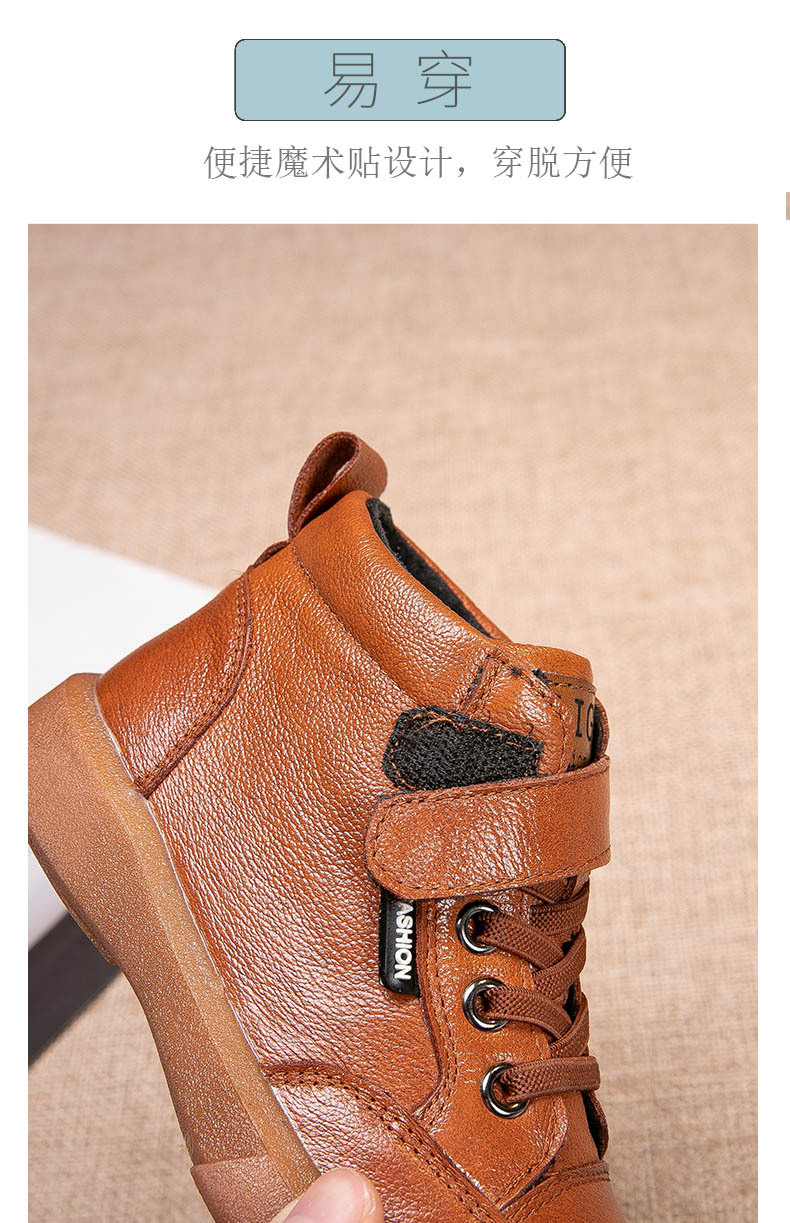 어린이 신발 어린이 마틴 부츠 2023 가을과 겨울 검은 가죽 부드러운 바닥 소녀의면 신발 중 큰 어린이 소년 가죽 부츠