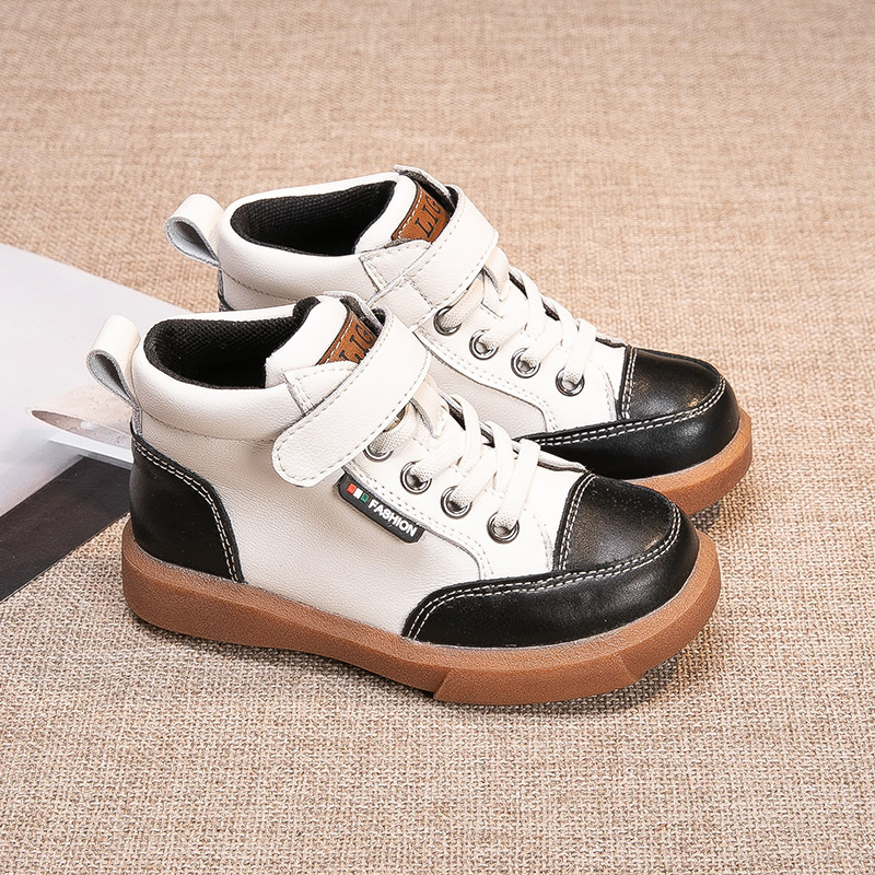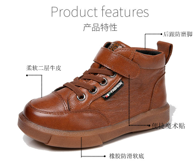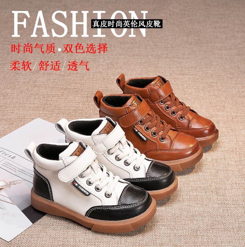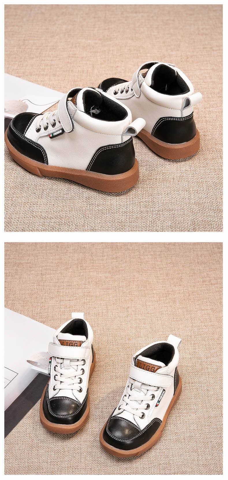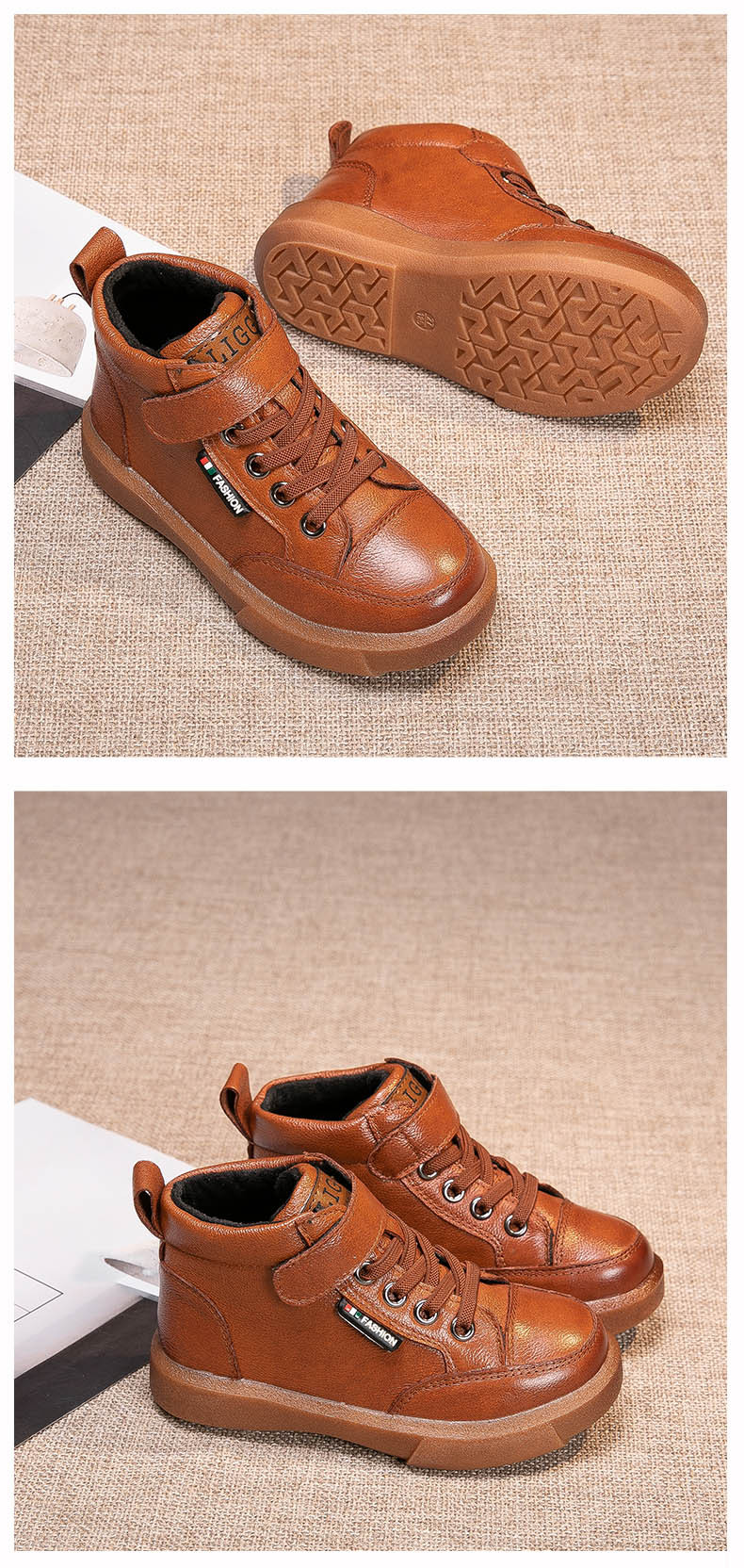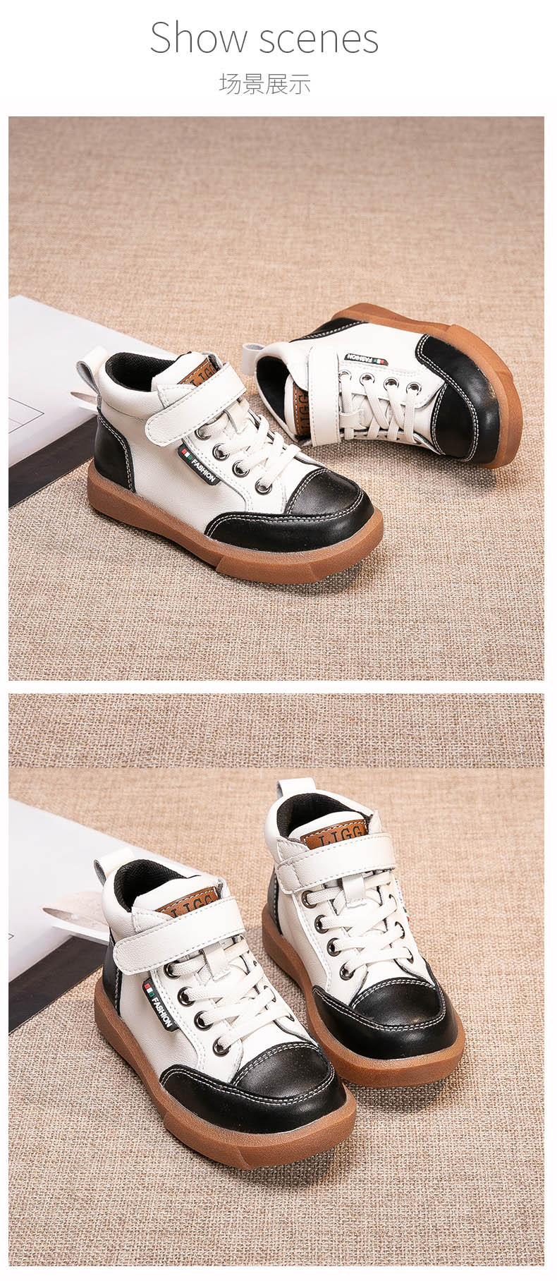 어린이 신발 어린이 마틴 부츠 2023 가을과 겨울 검은 가죽 부드러운 바닥 소녀의면 신발 중 큰 어린이 소년 가죽 부츠