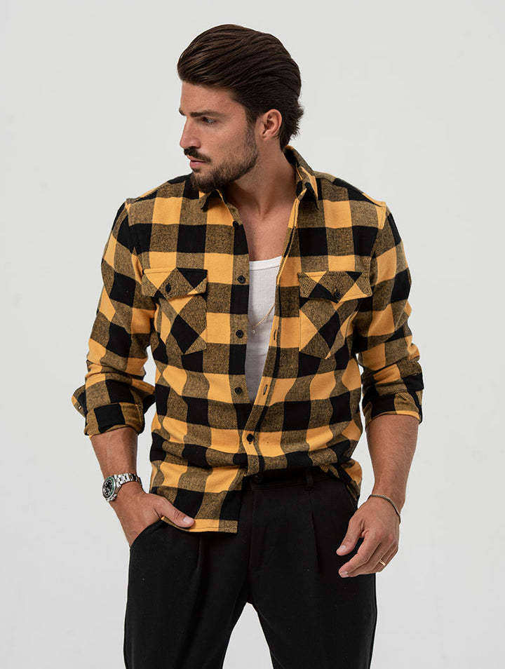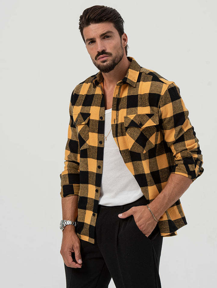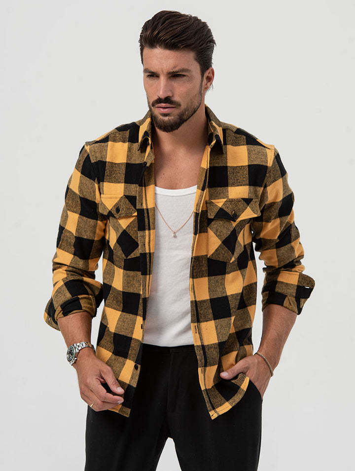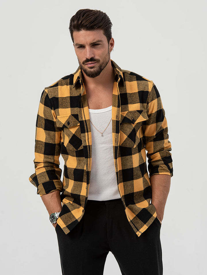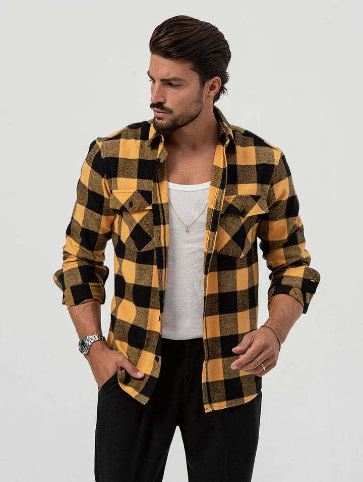 2025년 신상 셔츠, 신상 가을 겨울 포켓 체크무늬 가디건, 루즈한 라펠, 중년 및 청년을 위한 긴팔 캐주얼 탑스토어 가기