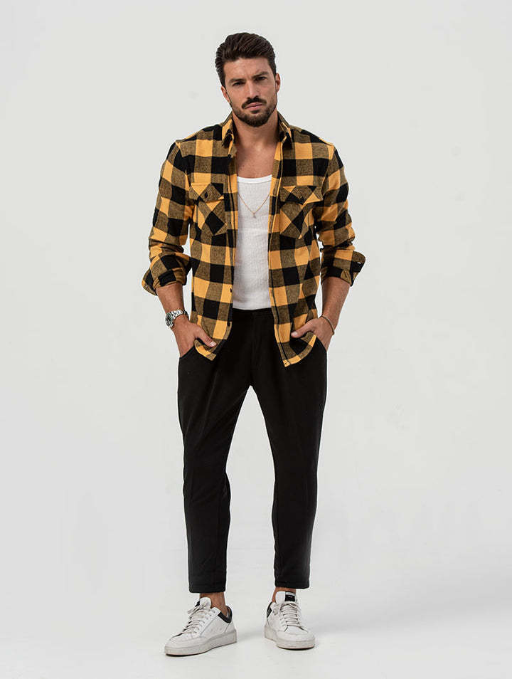 2025년 신상 셔츠, 신상 가을 겨울 포켓 체크무늬 가디건, 루즈한 라펠, 중년 및 청년을 위한 긴팔 캐주얼 탑