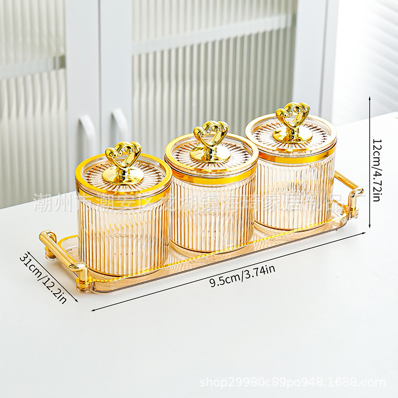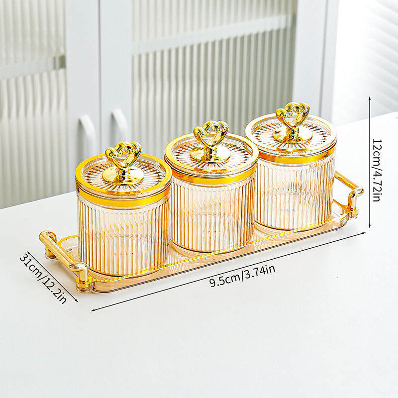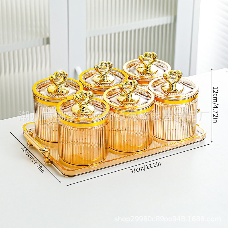 • 호박색 6칸 4개의 작은 원형 밀봉 항아리 트레이