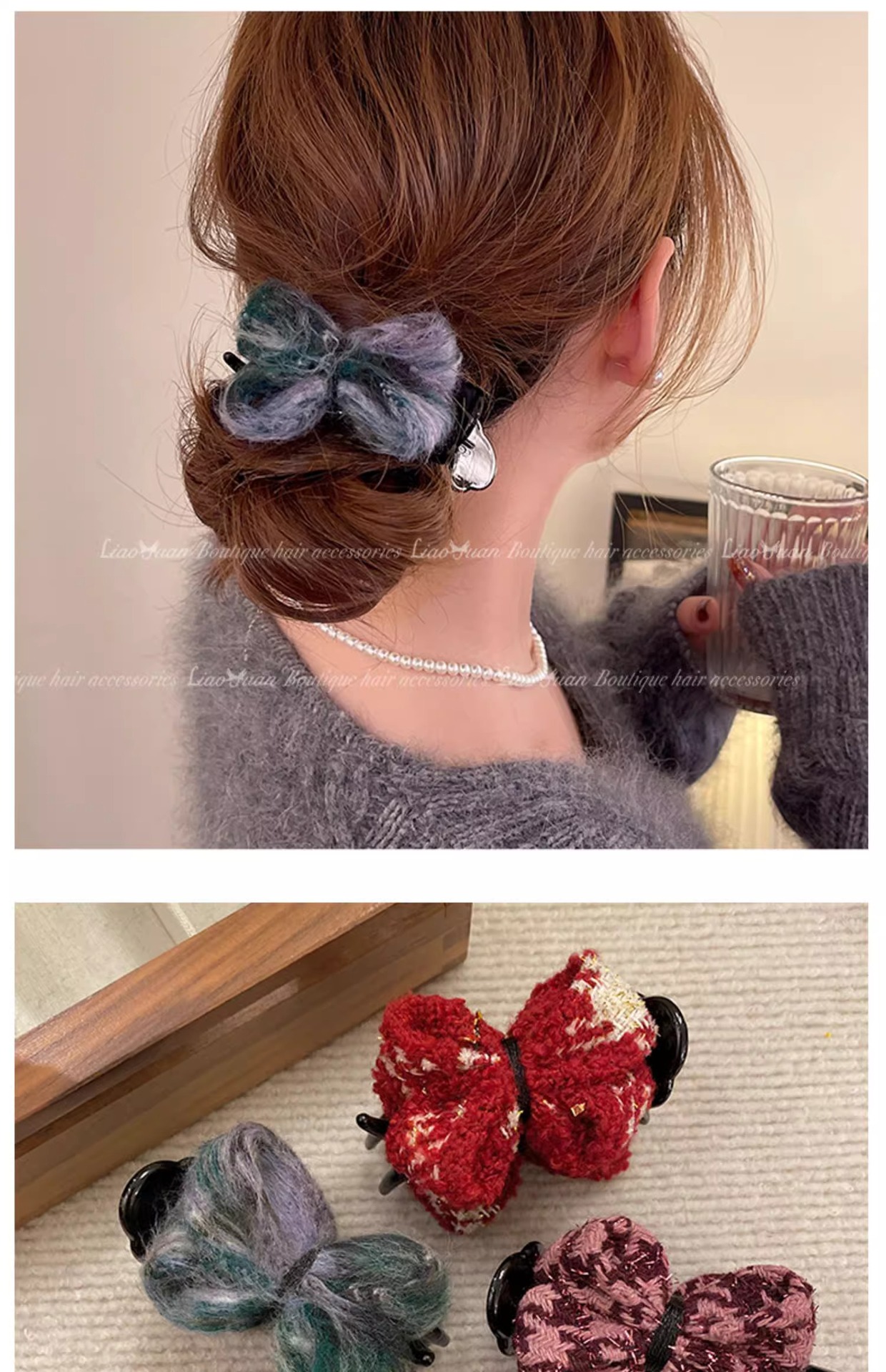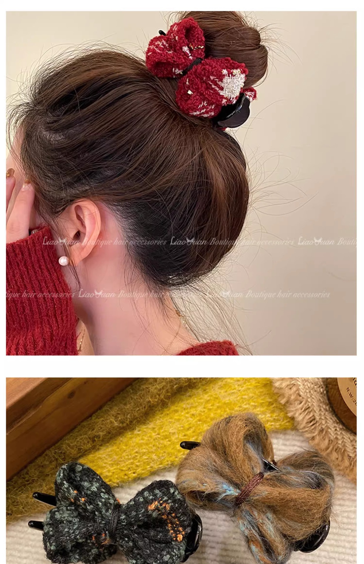 새해 빨간 공 머리 클립 가을과 겨울 나비 머리핀 여성 2024 새로운 귀여운 큰 상어 클립스토어 가기