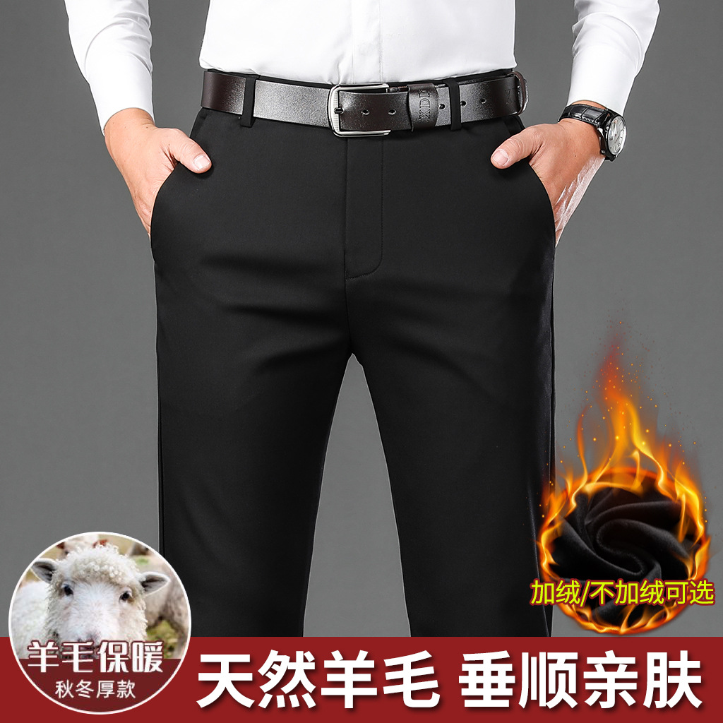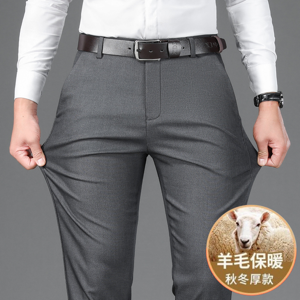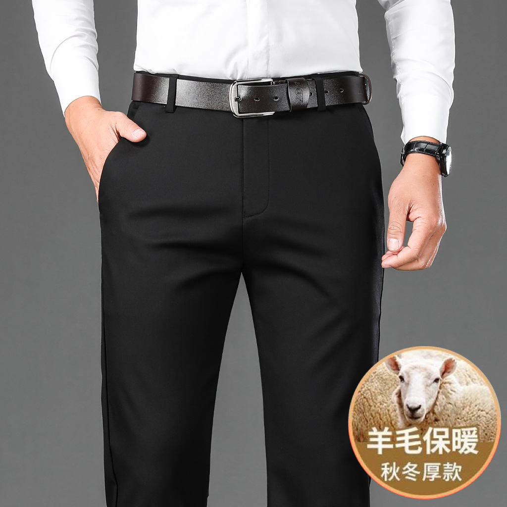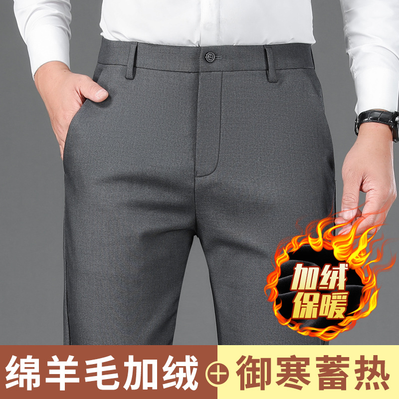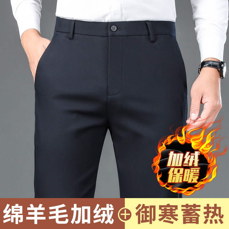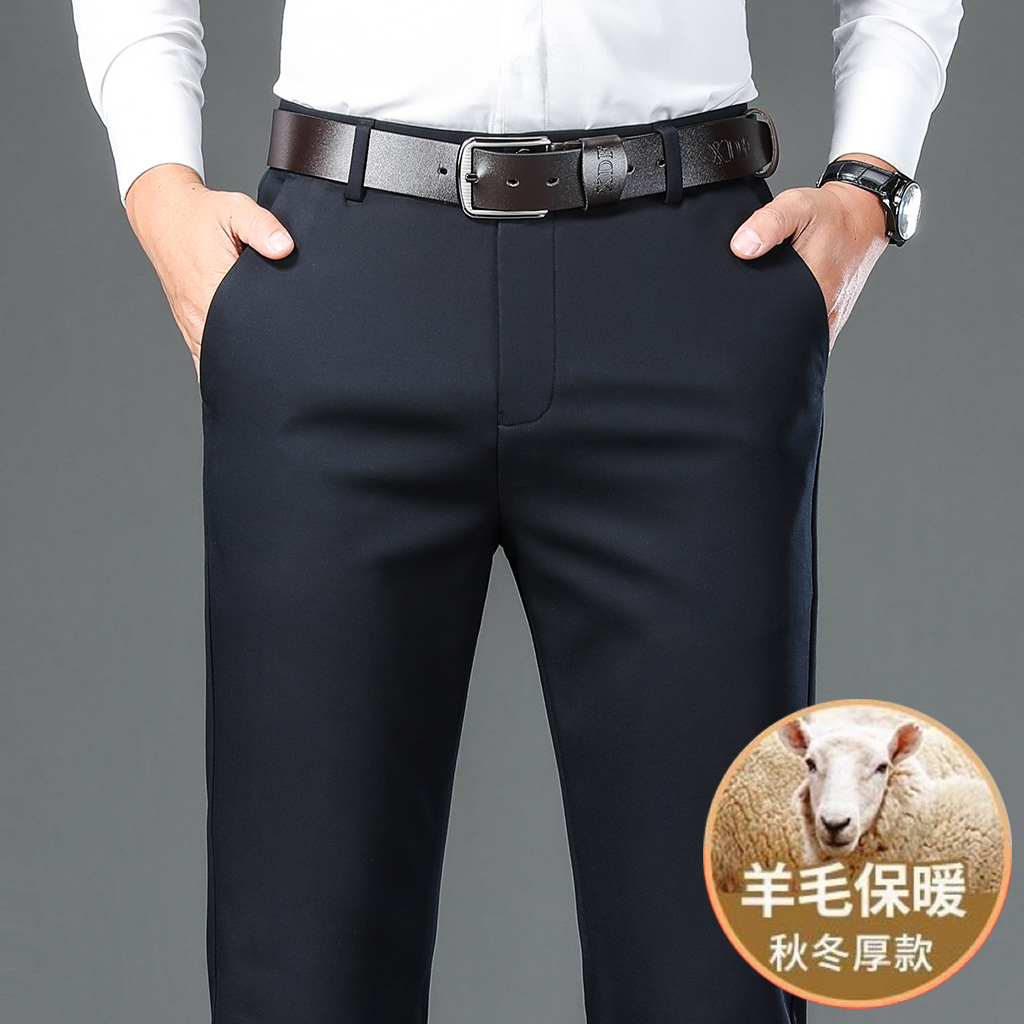 남자의 가을과 겨울 새로운 캐주얼 바지 스트레이트 중년 아빠 비즈니스 기모 두꺼운 따뜻한 긴 바지 남성용 바지