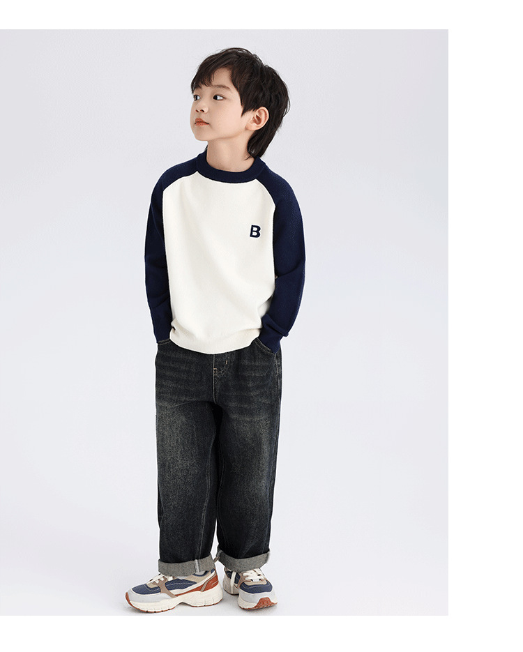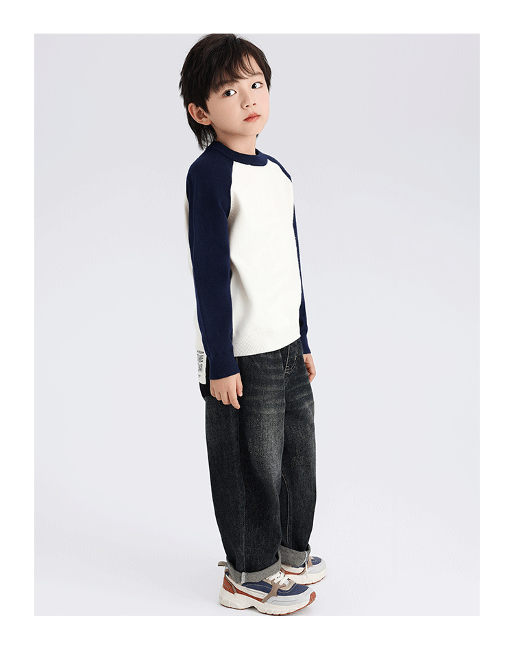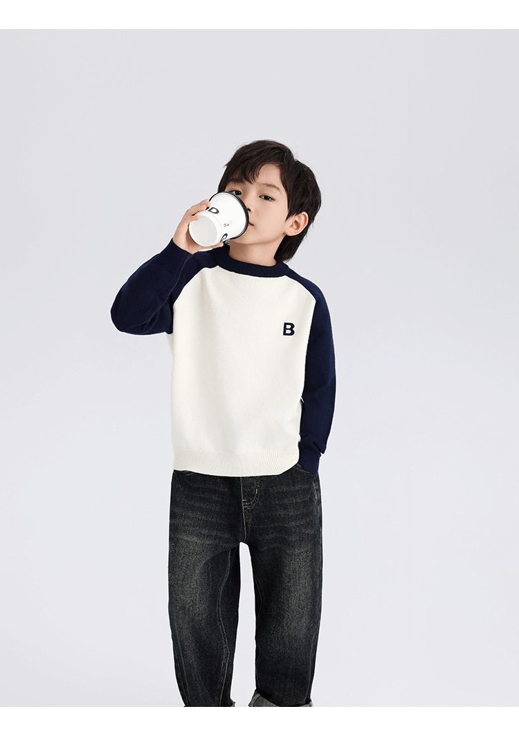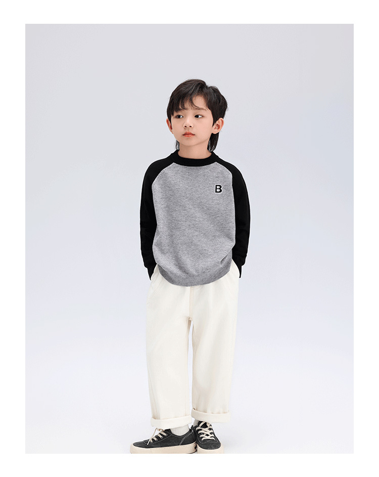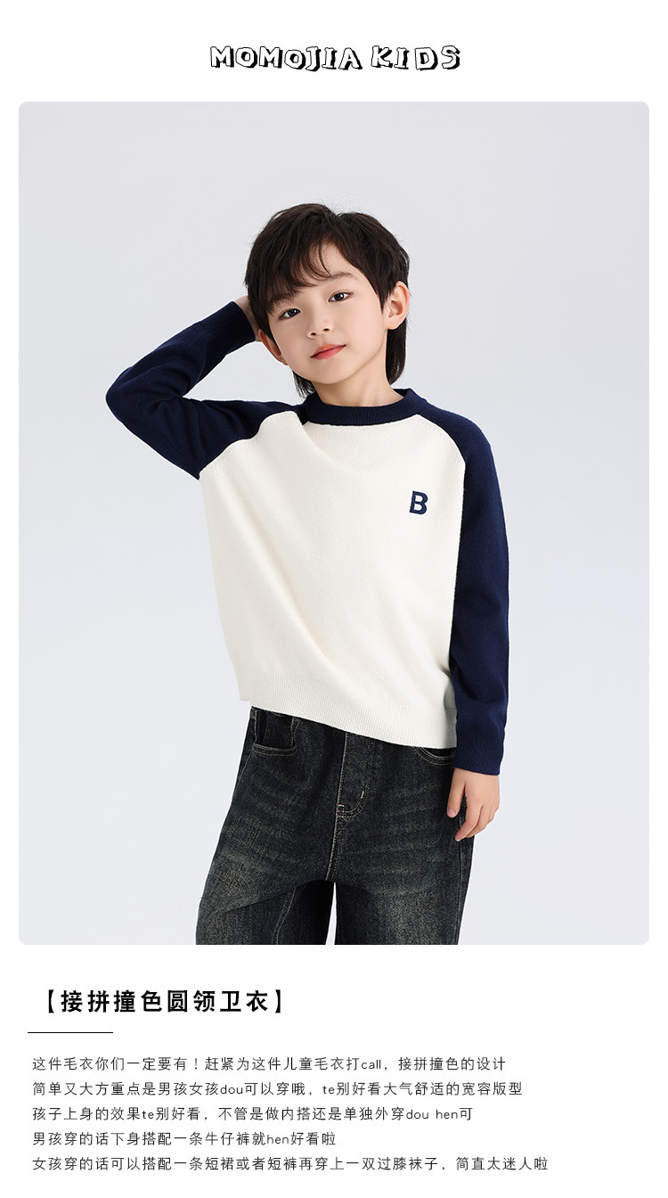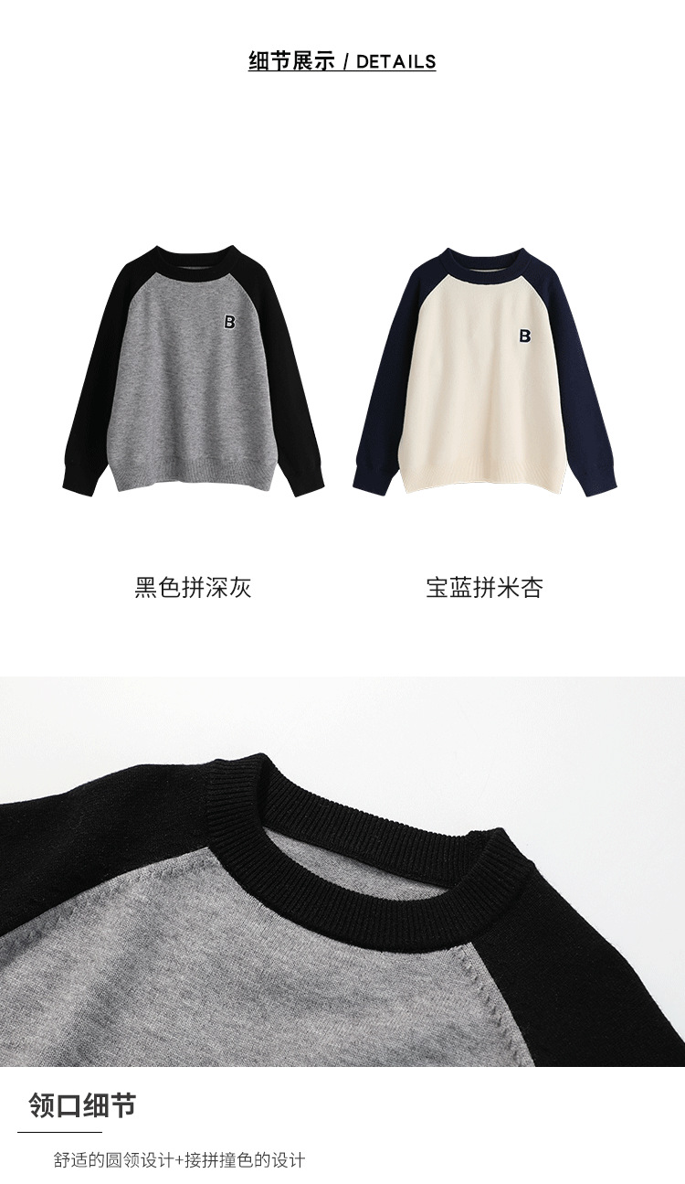 2024 봄 착용 새로운 소프트 보이 스웨터 간단한 아카데미 스타일 크루 넥 니트 스웨터 대비 어깨 탑스토어 가기