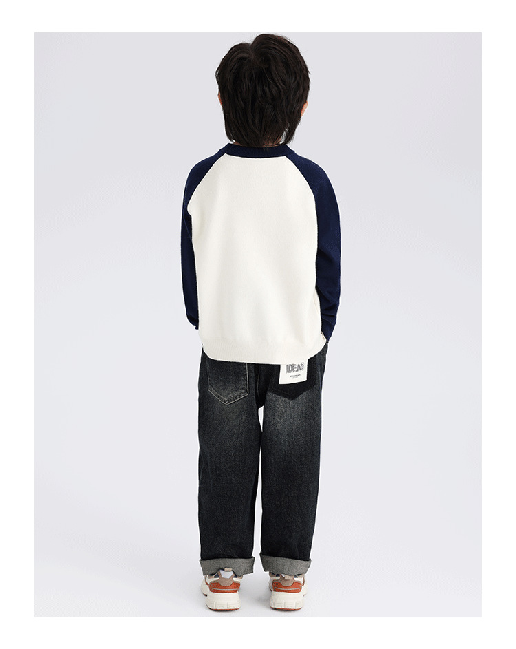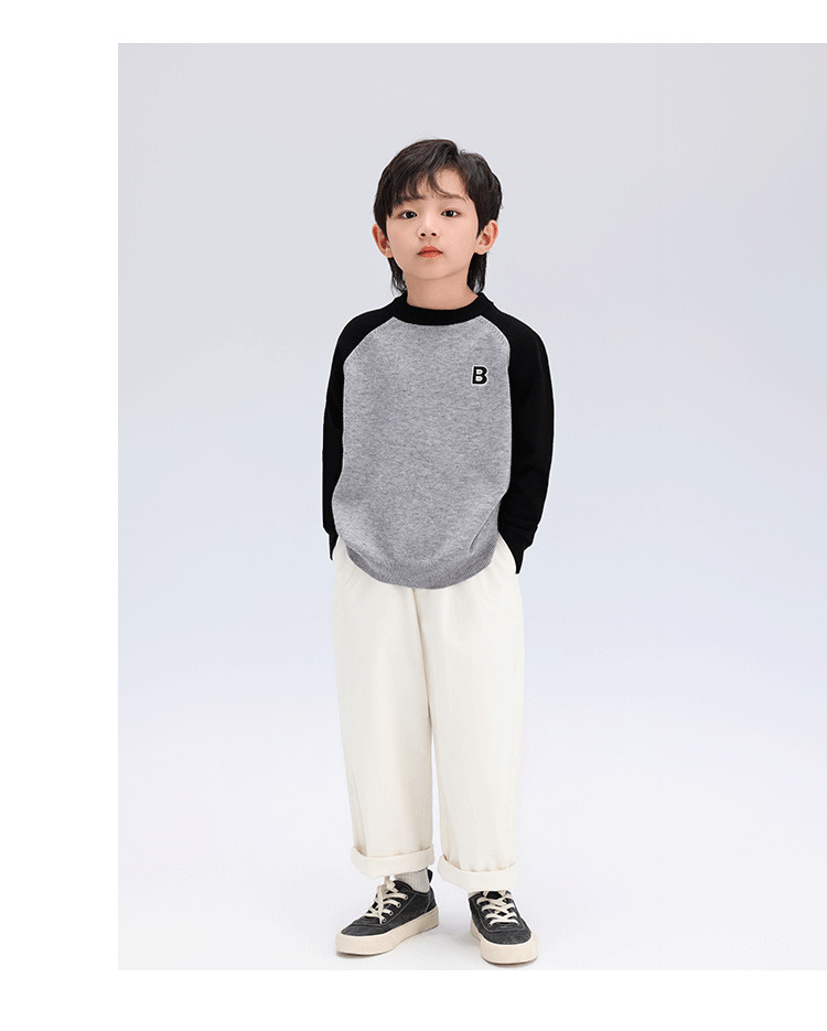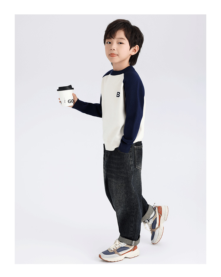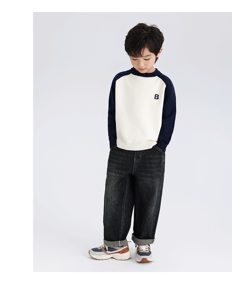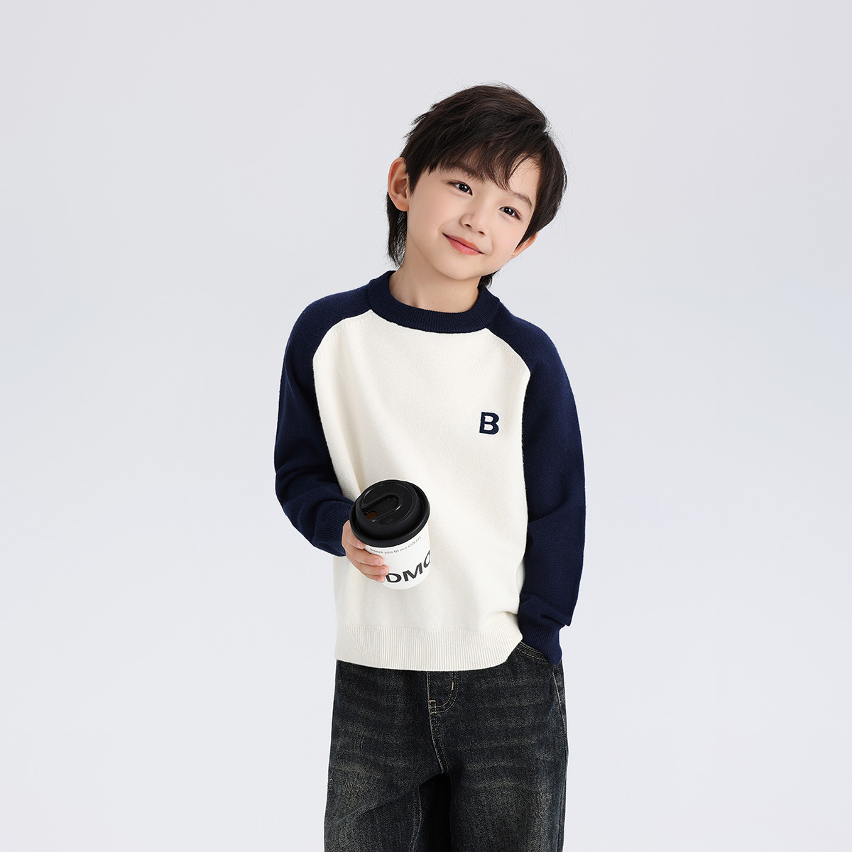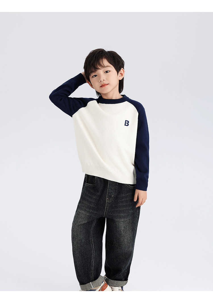 2024 봄 착용 새로운 소프트 보이 스웨터 간단한 아카데미 스타일 크루 넥 니트 스웨터 대비 어깨 탑스토어 가기