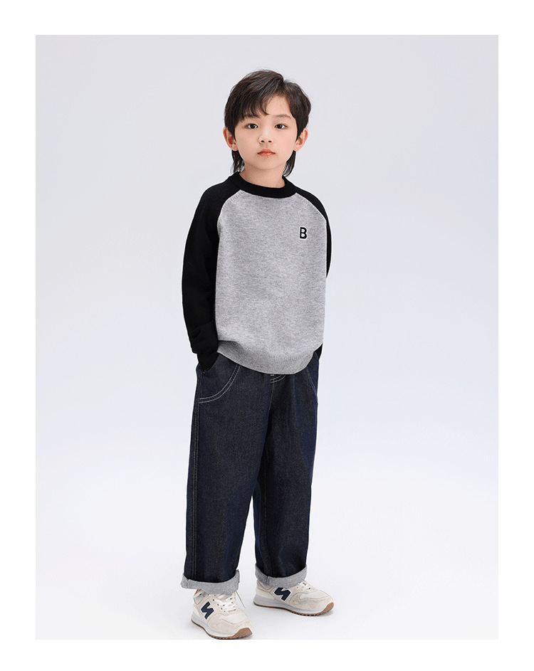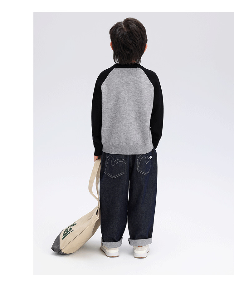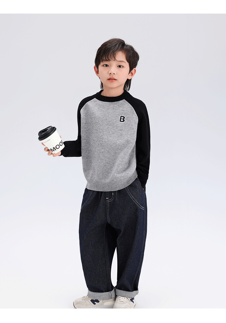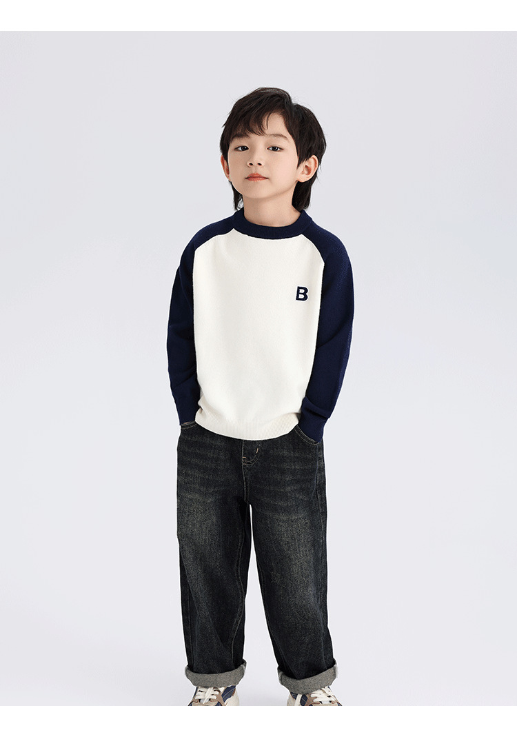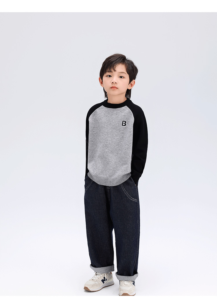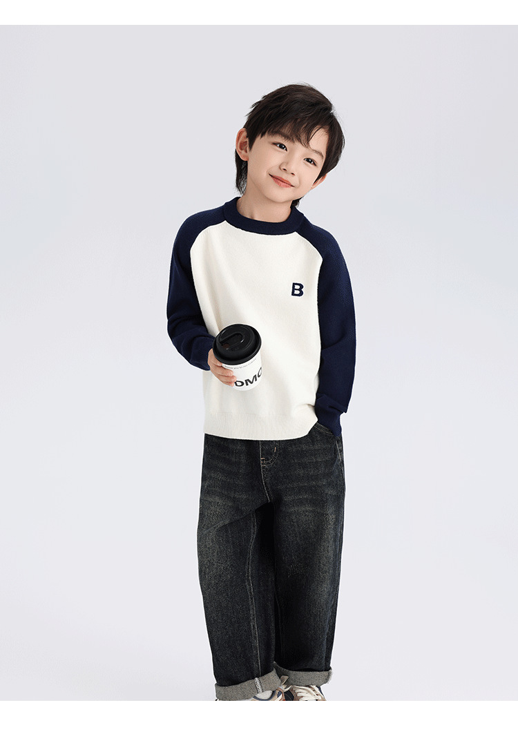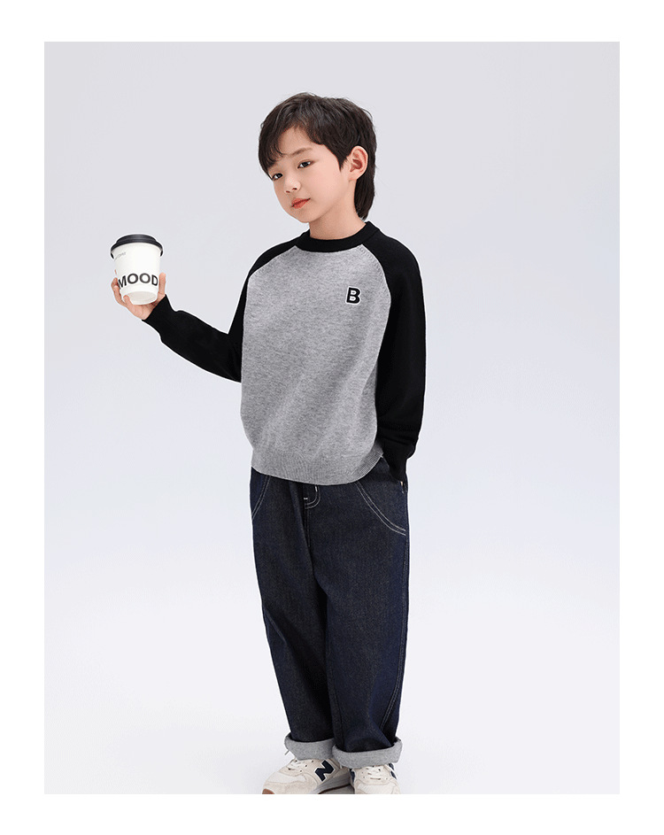 2024 봄 착용 새로운 소프트 보이 스웨터 간단한 아카데미 스타일 크루 넥 니트 스웨터 대비 어깨 탑스토어 가기