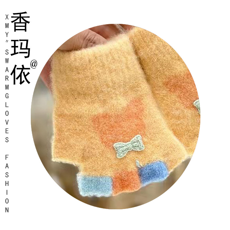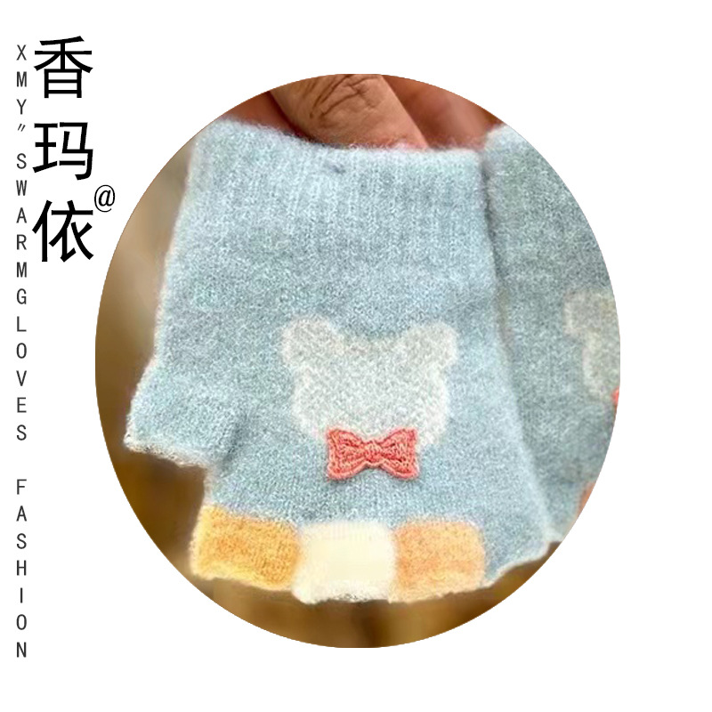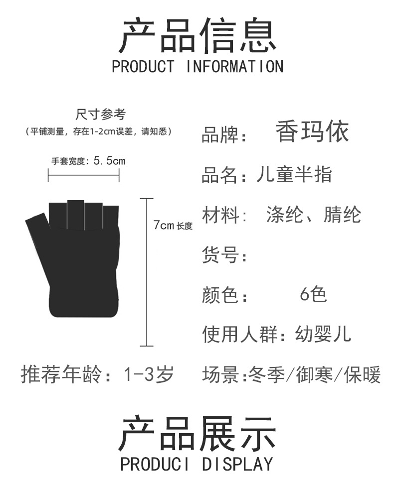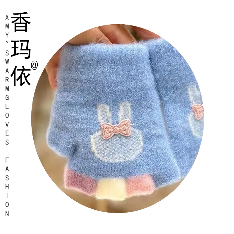 0-2 세 아기 장갑 가을과 겨울 얇은 귀여운 토끼 아기 소년과 소녀 유아 오픈 손가락 반 손가락 분할