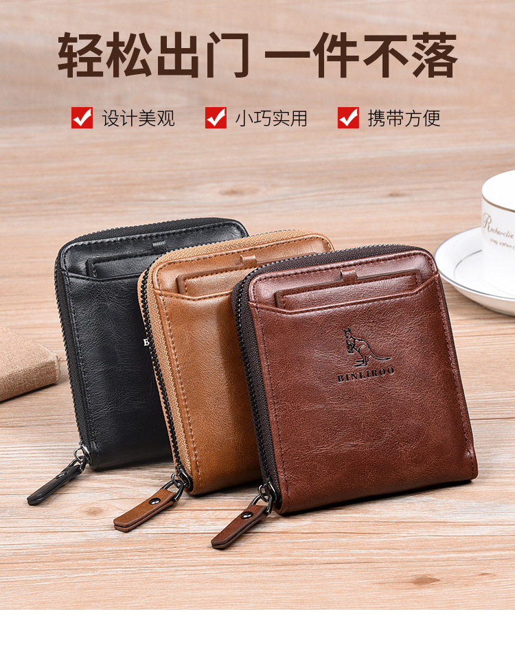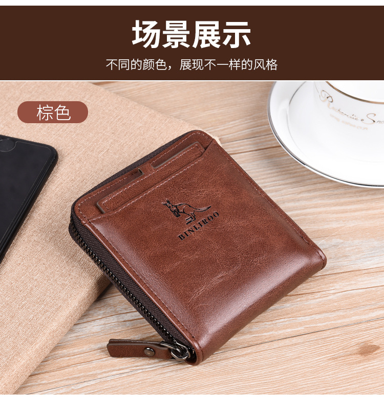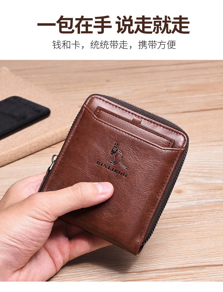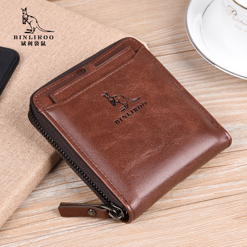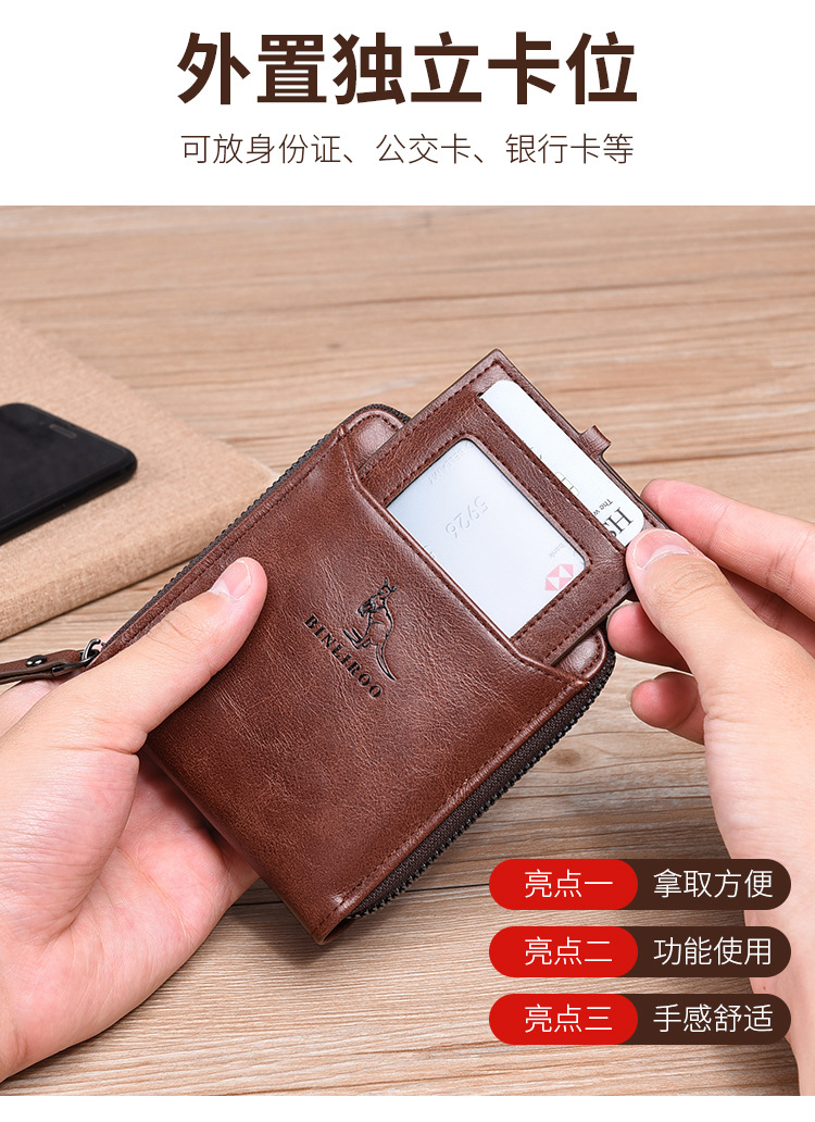 Binli 캥거루 지갑 남성용 짧은 도난 방지 브러시 남성용 지갑 지퍼 국경 간 선물 도매 멀티 카드 운전 카드 가방스토어 가기