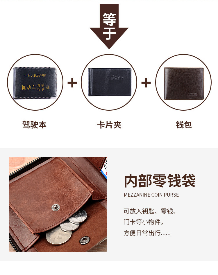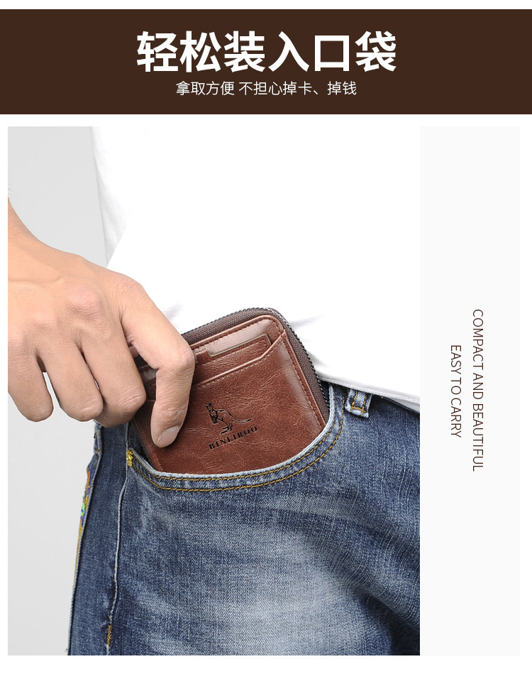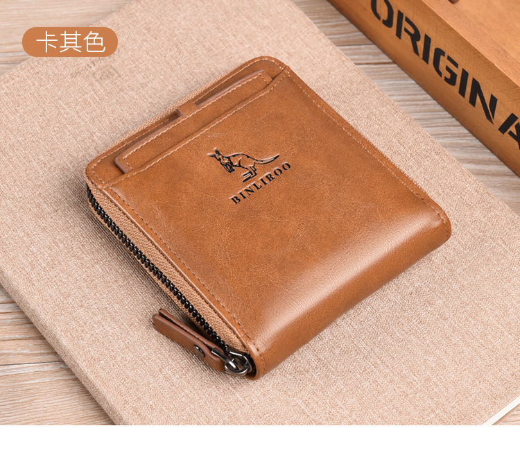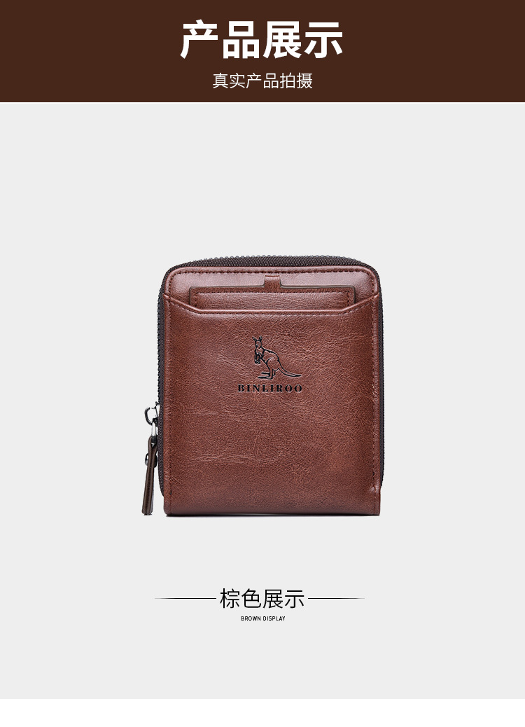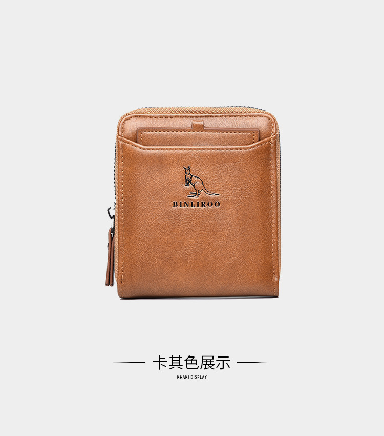 Binli 캥거루 지갑 남성용 짧은 도난 방지 브러시 남성용 지갑 지퍼 국경 간 선물 도매 멀티 카드 운전 카드 가방스토어 가기