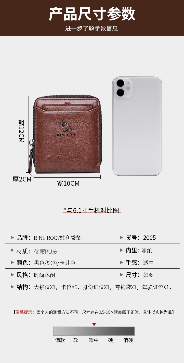 Binli 캥거루 지갑 남성용 짧은 도난 방지 브러시 남성용 지갑 지퍼 국경 간 선물 도매 멀티 카드 운전 카드 가방