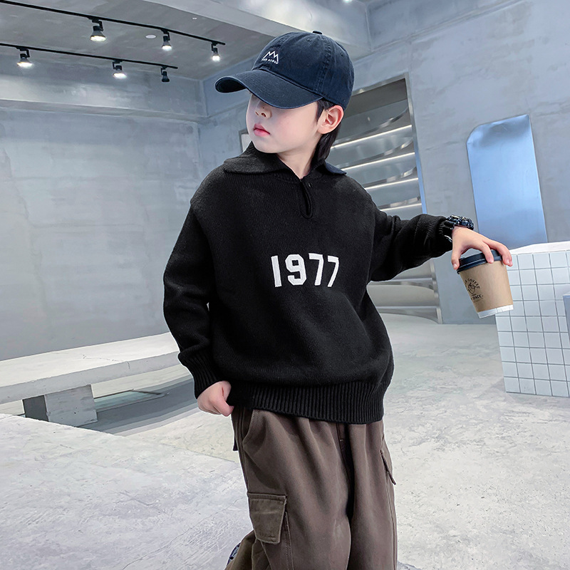 남아용 겨울 라펠 두꺼운 스웨터 2024 신상 아동 남아 가을 겨울 트렌디 니트웨어 중대형 아동용 스웨터