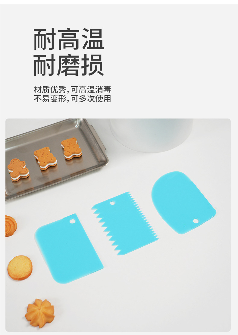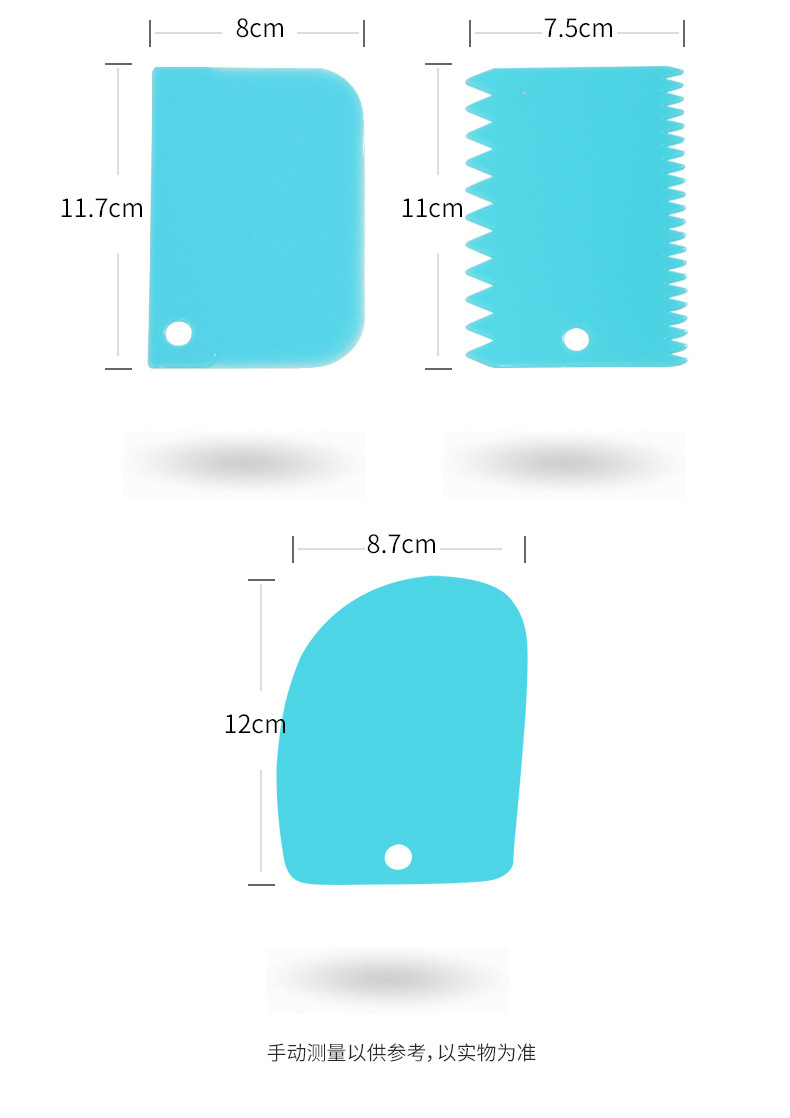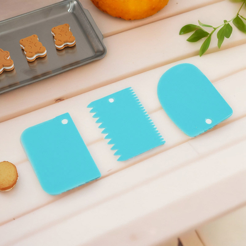PP 식품 등급 컬러 플라스틱 크림 스크레이퍼 도구 3 조각 크림 케이크 플라스틱 국수 커터 베이킹 스크레이퍼스토어 가기