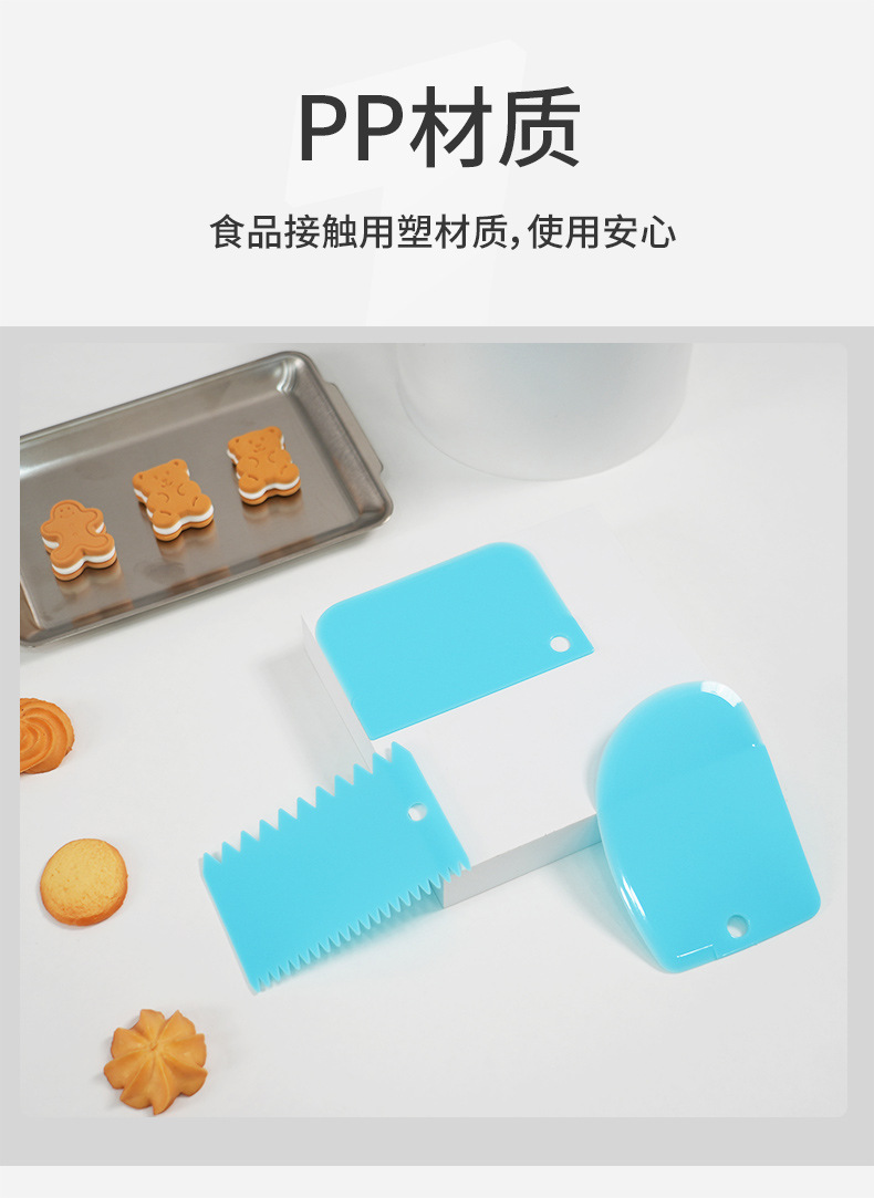 PP 식품 등급 컬러 플라스틱 크림 스크레이퍼 도구 3 조각 크림 케이크 플라스틱 국수 커터 베이킹 스크레이퍼