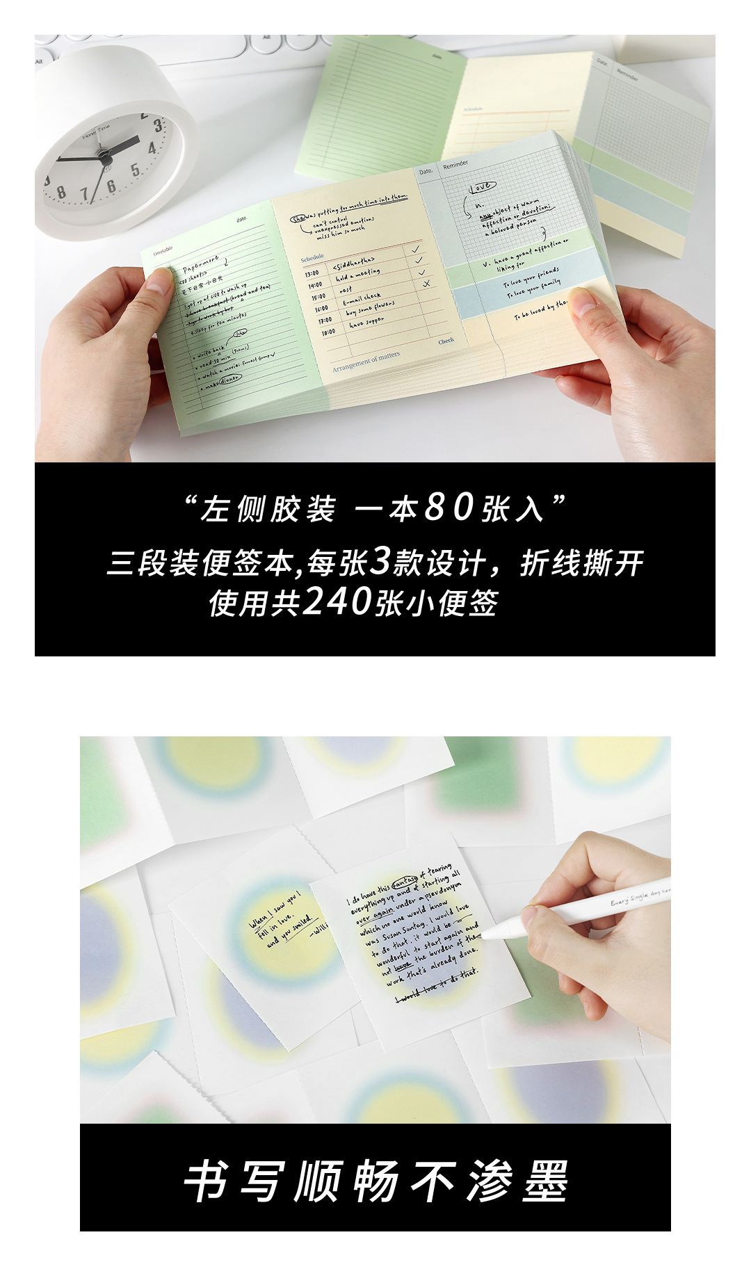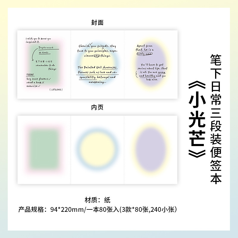 PaperMore 3 섹션 노트 북 Daily Series 미니 창조적 인 눈물을 흘리는 학생 메시지 종이 접착제 책