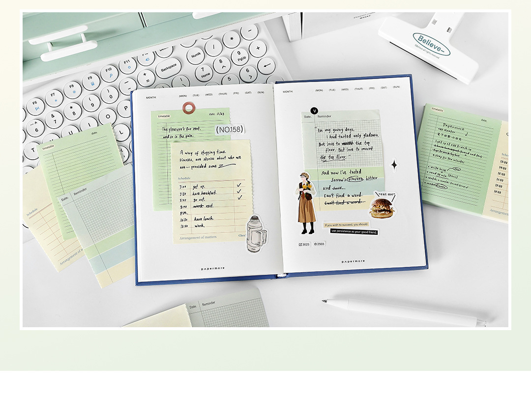 PaperMore 3 섹션 노트 북 Daily Series 미니 창조적 인 눈물을 흘리는 학생 메시지 종이 접착제 책스토어 가기