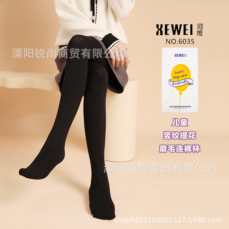 Kewei 어린이 레깅스 6035/8810 가을, 겨울 따뜻한 중간 두꺼운 면 세로 줄무늬 플러스 벨벳 팬티 스타킹스토어 가기