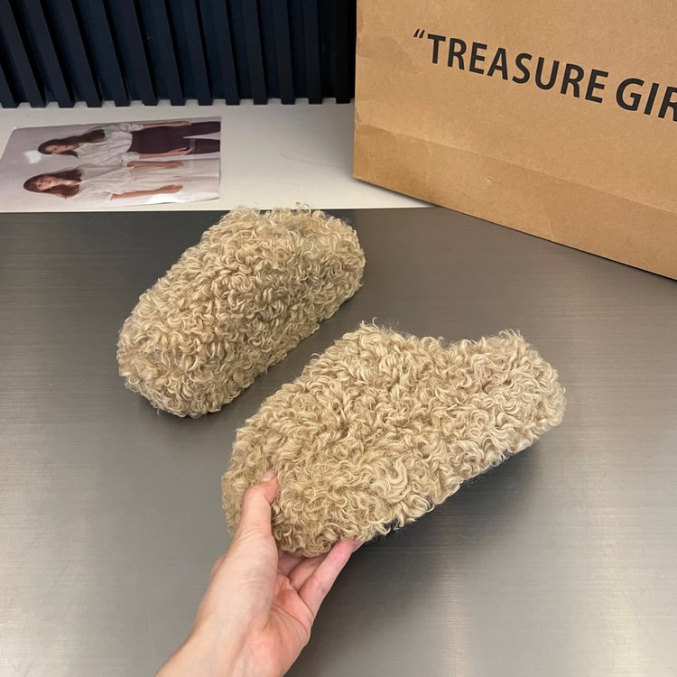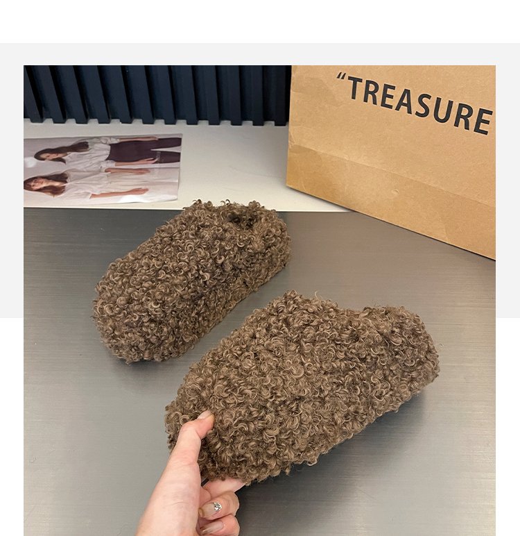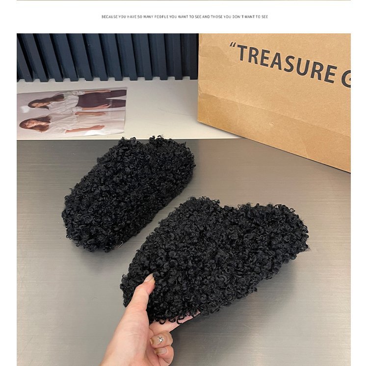 두꺼운 밑창의 롤업 퍼 토캡 슬리퍼 여성용 2026 가을 겨울 신상품 따뜻하고 키높이 효과 있는 면 슬리퍼스토어 가기