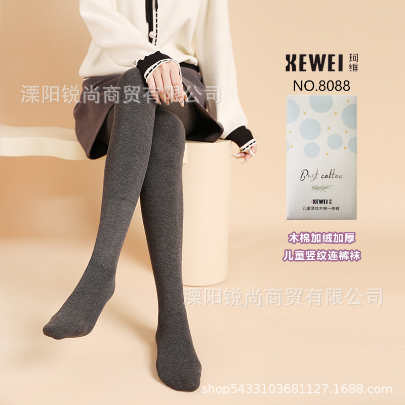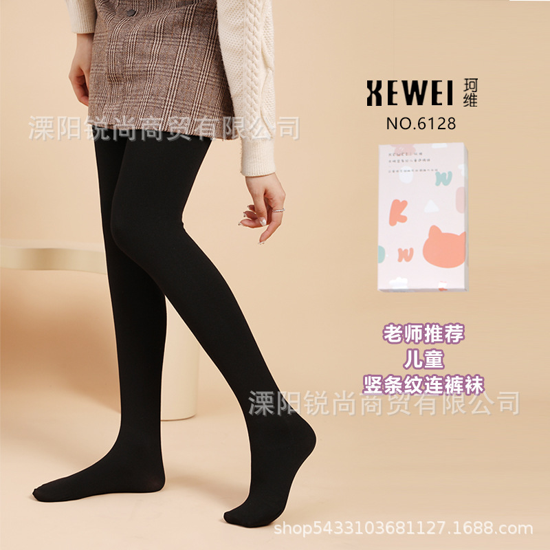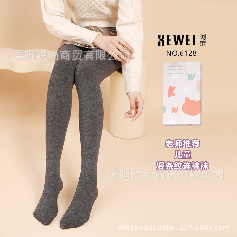 Kewei 6128 중간 두꺼운 면 세로 줄무늬 어린이 9 점 레깅스 댄스 양말 가랑이 봄, 가을 소녀 팬티 스타킹