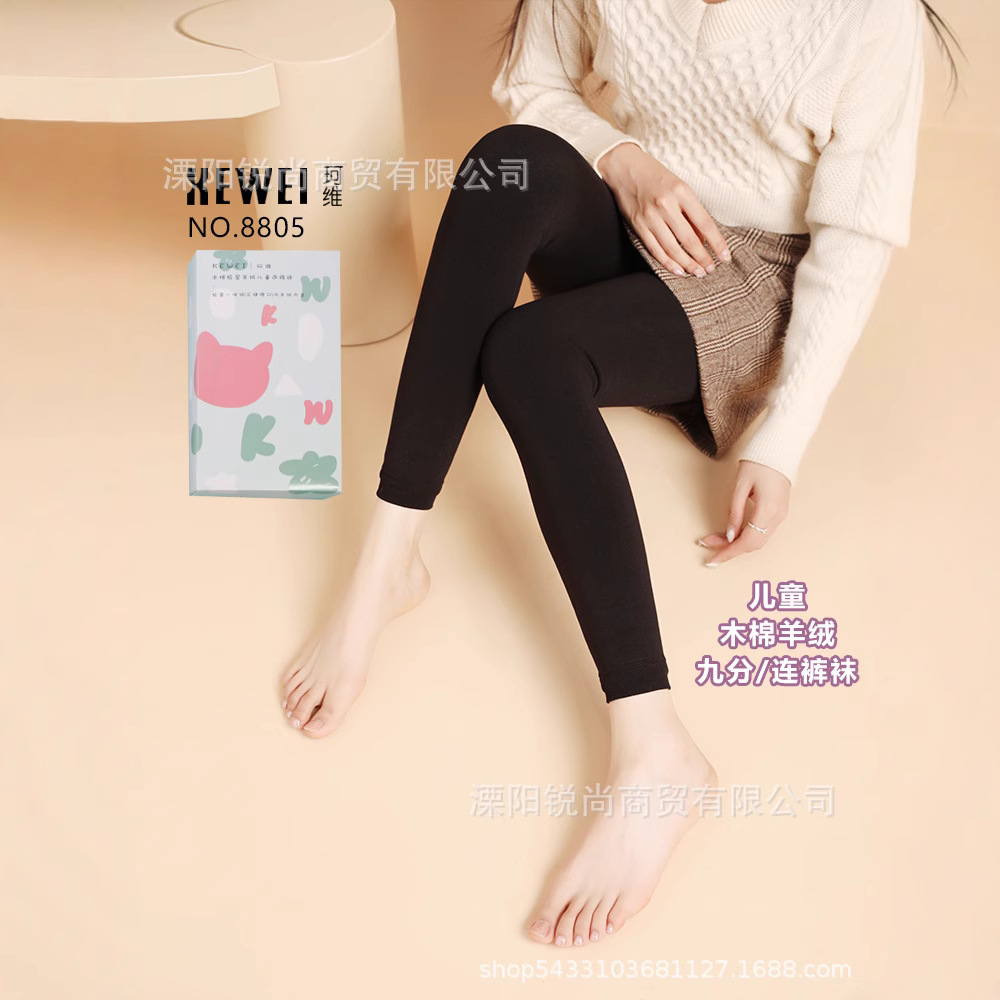 Kewei 6128 중간 두꺼운 면 세로 줄무늬 어린이 9 점 레깅스 댄스 양말 가랑이 봄, 가을 소녀 팬티 스타킹스토어 가기