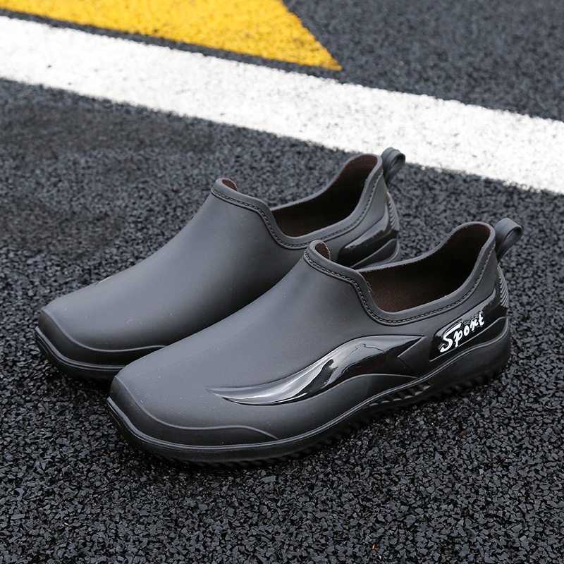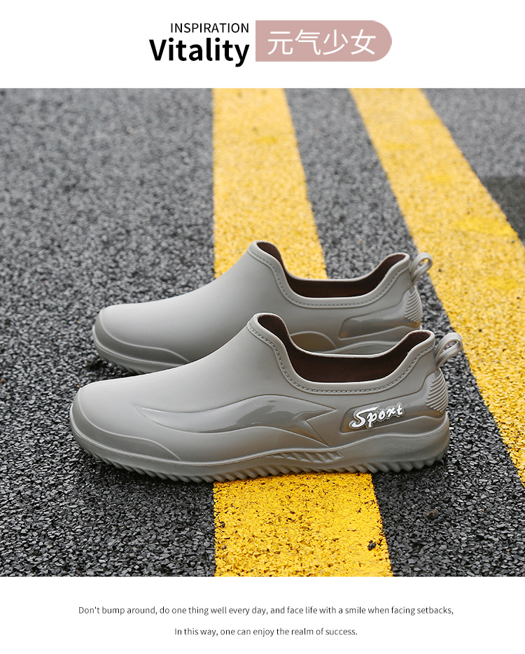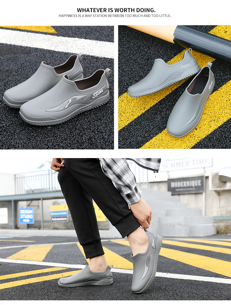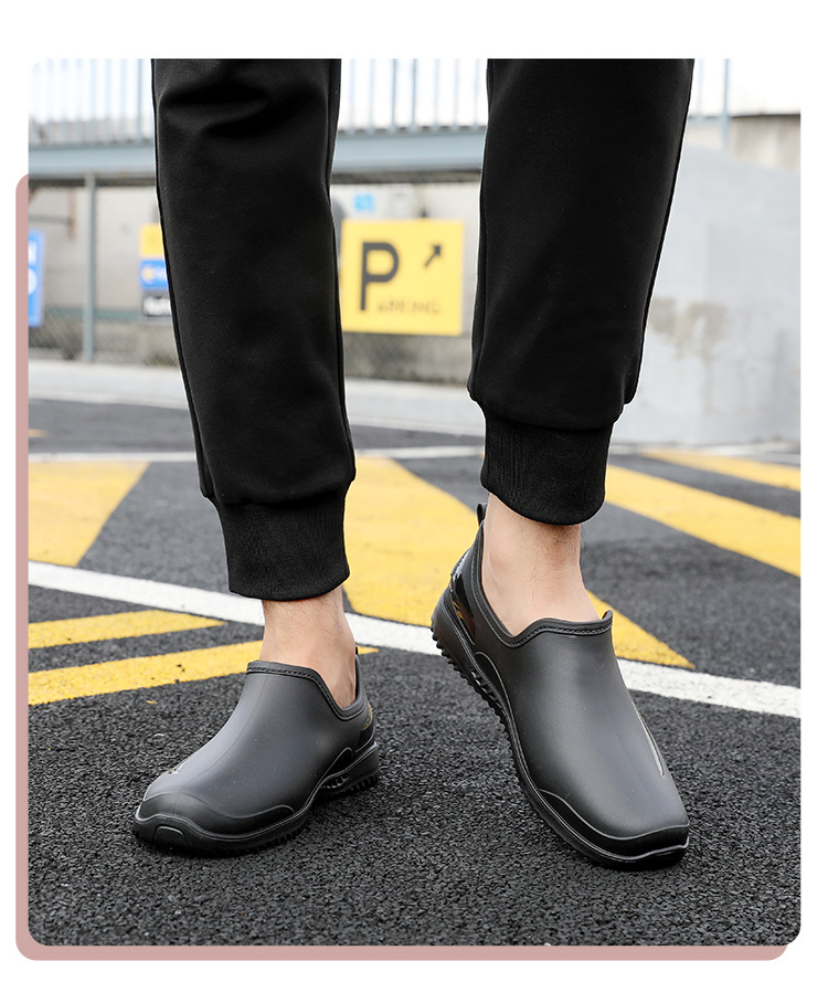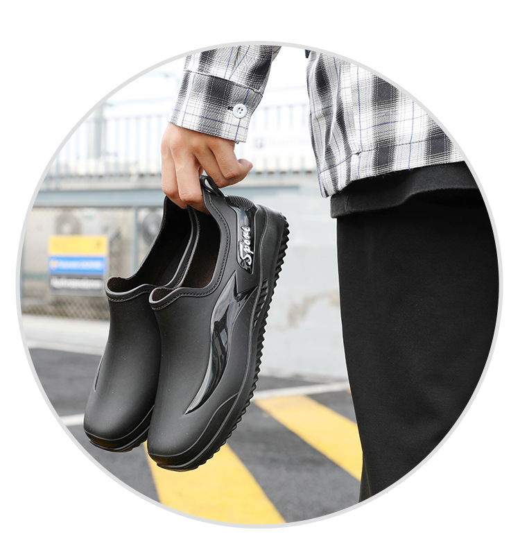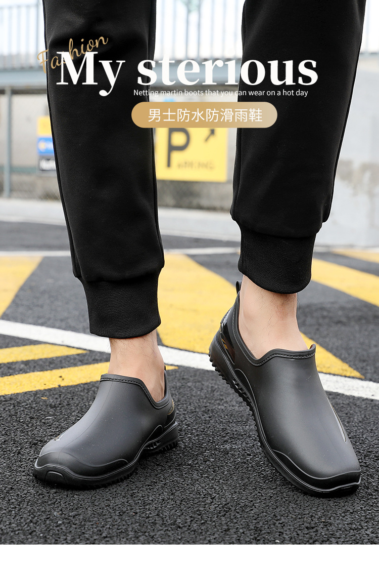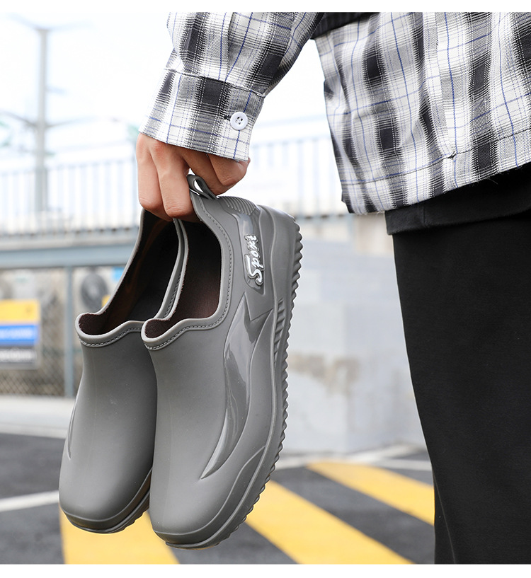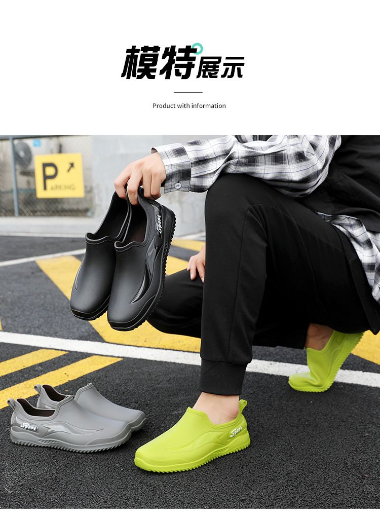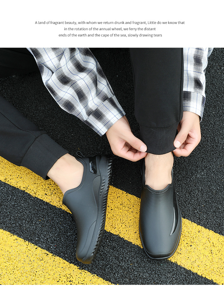 세련된 로우 탑 레인 부츠 워터 슈즈 남성 성인 따뜻한 방수 신발 로우 컷 고무 신발 오버 슈즈 비 슬립 짧은 작업 여름