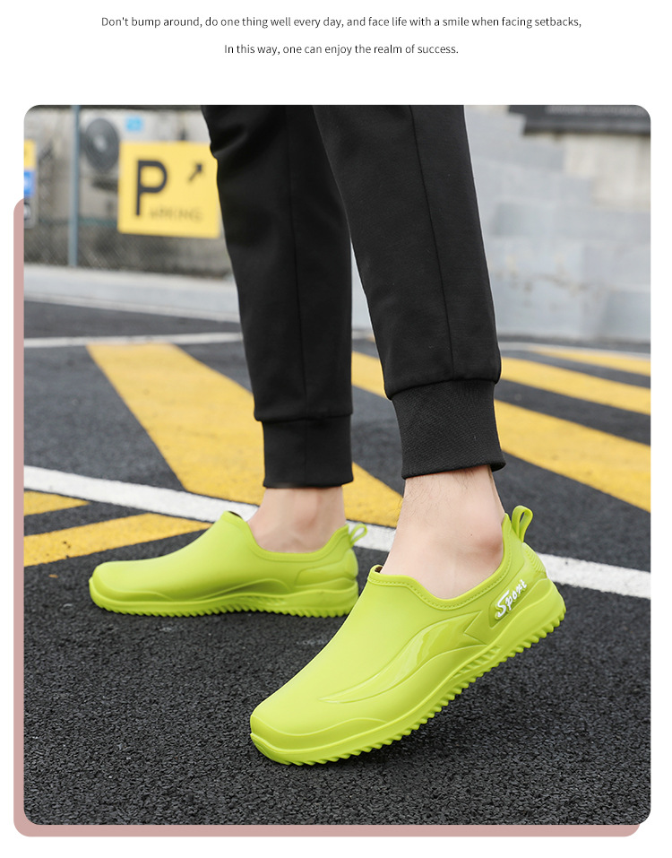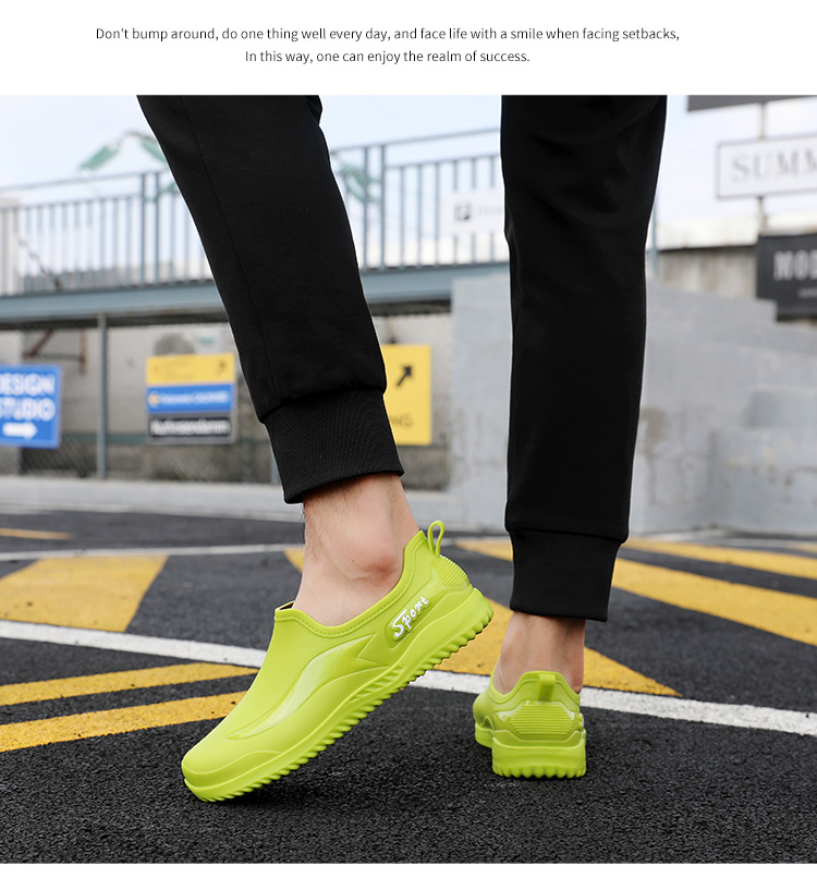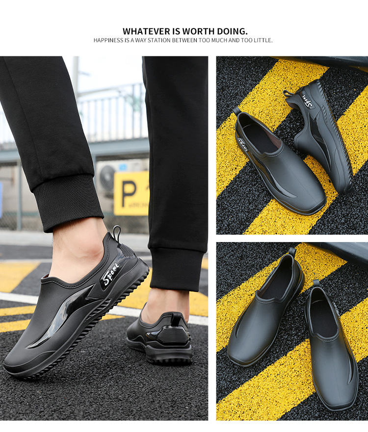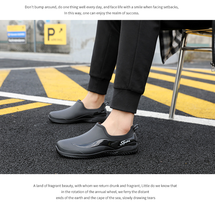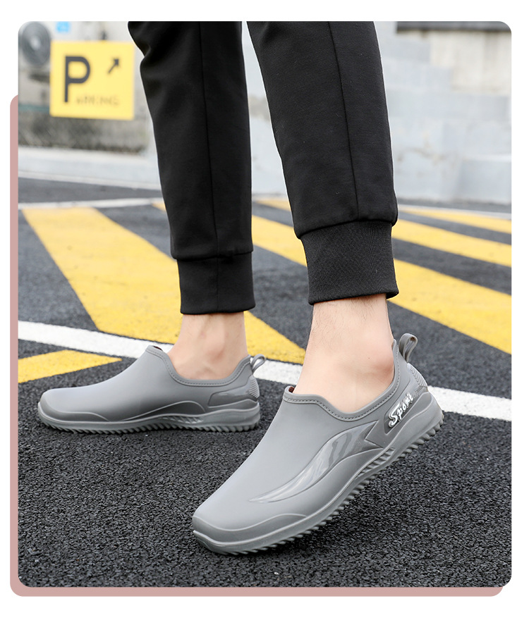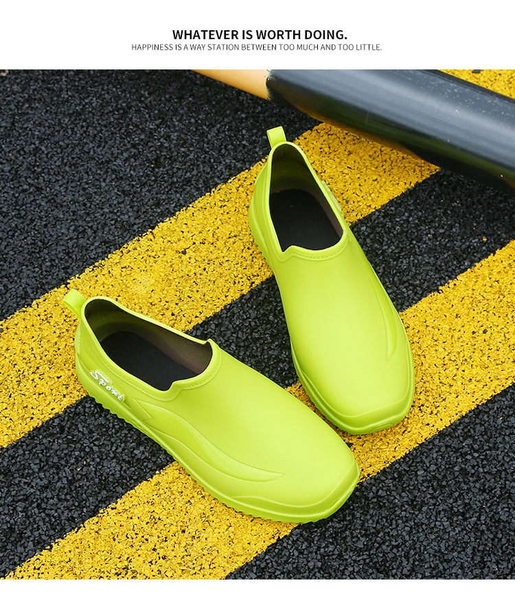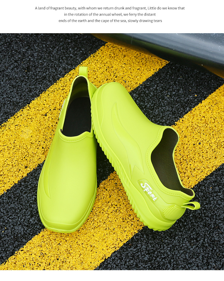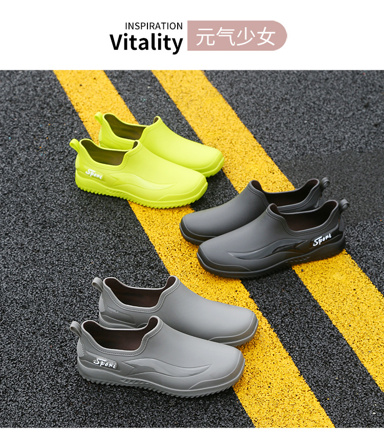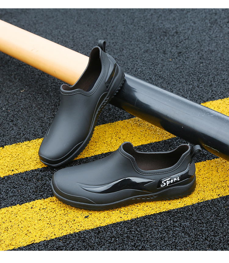 세련된 로우 탑 레인 부츠 워터 슈즈 남성 성인 따뜻한 방수 신발 로우 컷 고무 신발 오버 슈즈 비 슬립 짧은 작업 여름